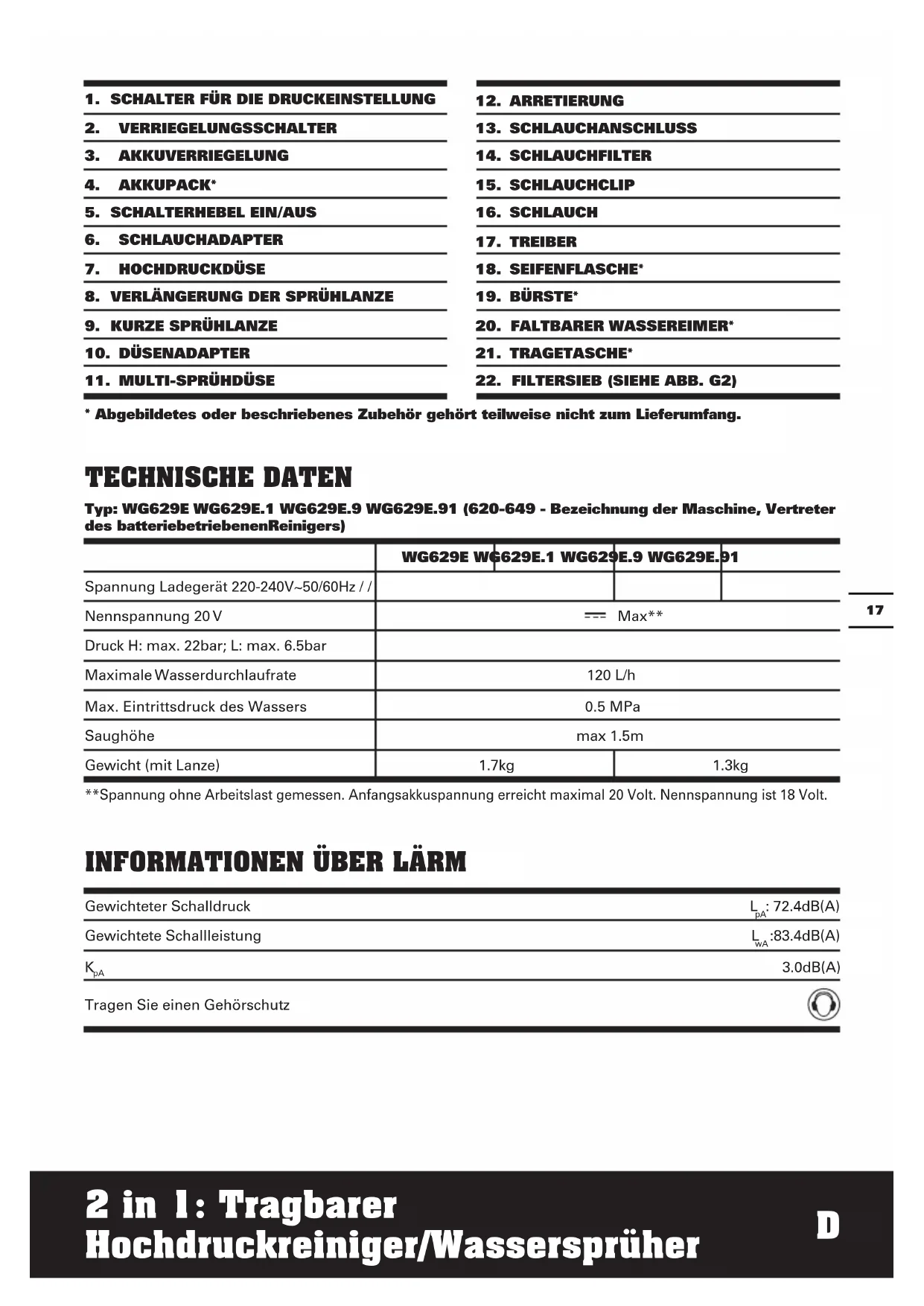 Typ: WG629E WG629E.1 WG629E.9 WG629E.91 (620-649 - Bezeichnung der Maschine, Vertreter des batteriebetriebenenReinigers)