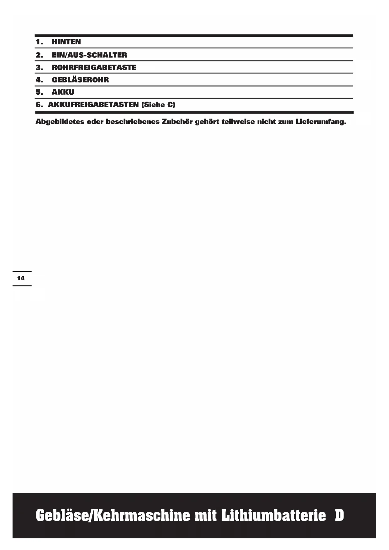 Abgebildetes oder beschriebenes Zubehör gehört teilweise nicht zum Lieferumfang.Gebläse/Kehrmaschine mit Lithiumbatterie D