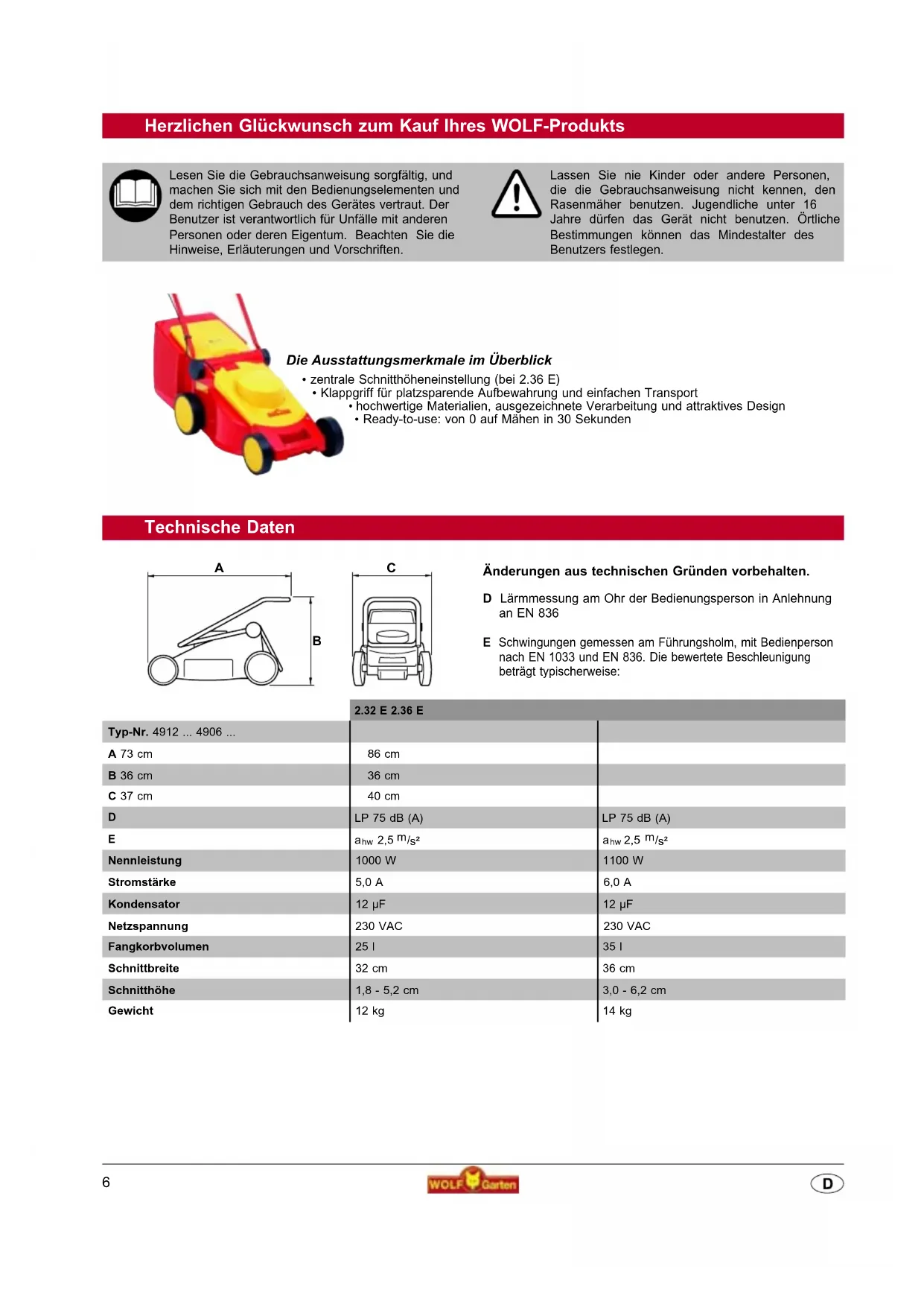 2.36 E - Rasenmäher Wolf Garten - Kostenlose Bedienungsanleitung