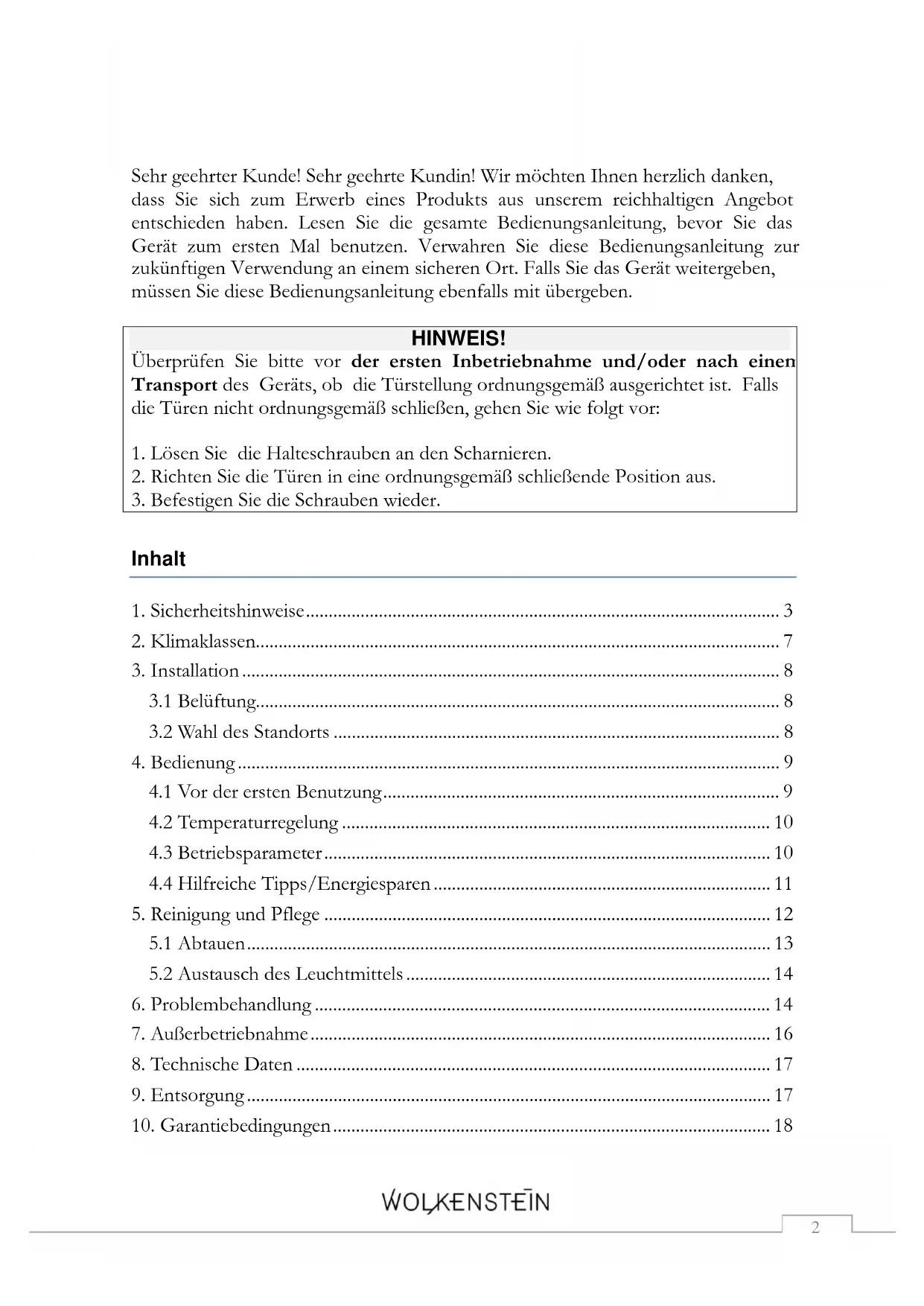 Lesen Sie vor der ersten Benutzung des Geräts die gesamten Sicherheitshinweise gründlich durch. Die darin enthaltenen Informationen dienen dem Schutz Ihrer Gesundheit. Die Nichtbeachtung der Sicherheitshinweise kann zu schweren Beeinträchtigungen Ihrer Gesundheit und im schlimmsten Fall zum Tod führen. GEFAHR! verweist auf eine Gefahrensituation, die, wenn sie nicht abgewendet wird, eine unmittelbare Gefährdung für Leben und Gesundheit zur Folge hat. WARNUNG! verweist auf eine Gefahrensituation, die, wenn sie nicht abgewendet wird, eine mögliche bevorstehende Gefährdung für Leben und Gesundheit zur Folge hat. VORSICHT! verweist auf eine Gefahrensituation, die, wenn sie nicht abgewendet wird, zu mittelschweren oder kleineren Verletzungen führen kann. HINWEIS! verweist auf eine Gefahrensituation, die, wenn sie nicht abgewendet wird, eine mögliche Beschädigung des Geräts zur Folge hat. Bewahren Sie diese Bedienungsanleitung so auf, dass sie bei Bedarf jederzeit griffbereit ist. Befolgen Sie sorgfältig alle Hinweise, um Unfälle oder eine Beschädigung des Geräts zu vermeiden.4 Prüfen Sie auf jeden Fall auch das technische Umfeld des Geräts! Sind alle Kabel oder Leitungen, die zu ihrem Gerät führen, in Ordnung? Oder sind sie veraltet und halten der Geräteleistung nicht mehr Stand? Daher muss durch eine qualifizierte Fachkraft (Elektrotechniker/-in) eine Überprüfung bereits vorhandener wie auch neuer Anschlüsse erfolgen. Sämtliche Arbeiten, die zum Anschluss des Geräts an die Stromversorgung notwendig sind, dürfen nur von einer qualifizierten Fachkraft (Elektrotechniker/-in) durchgeführt werden. Das Gerät ist zur privaten Nutzung bestimmt. Das Gerät ist ausschließlich zum Kühlen von Lebensmitteln bestimmt. Das Gerät ist ausschließlich zum Betrieb innerhalb geschlossener Räume bestimmt. Dieses Gerät darf nicht beim Camping und in öffentlichen Verkehrsmitteln betrieben werden. Betreiben Sie das Gerät ausschließlich im Sinne seiner bestimmungsgemäßen Verwendung. Erlauben Sie niemandem, der mit der Bedienungsanleitung nicht vertraut ist, das Gerät zu benutzen. Dieses Gerät kann von Kindern ab 8 Jahren und darüber sowie von Personen mit verringerten physischen, sensorischen oder mentalen Fähigkeiten oder Mangel an Erfahrung und Wissen benutzt werden, wenn sie beaufsichtigt oder bezüglich des sicheren Gebrauchs des Gerätes unterwiesen wurden und die daraus resultierenden Gefahren verstehen. Kinder dürfen nicht mit dem Gerät spielen. Reinigung und Benutzer-Wartung dürfen nicht von Kindern ohne Beaufsichtigung durchgeführt werden. GEFAHR!