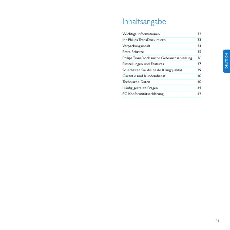 DEUTSCH Ihr Philips TransDock micro Verpackungsinhalt Beinhaltet