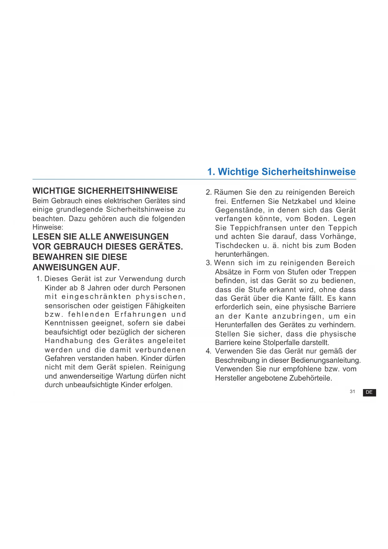 1. Wichtige Sicherheitshinweise