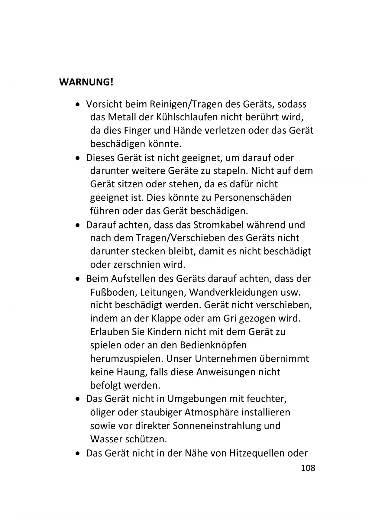 4. Die Kühltruhe darf nicht im Freien betrieben werden.