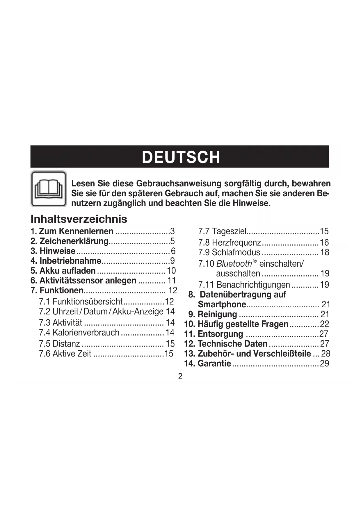 - Dieses Gerät ist kein Medizinprodukt. Die Herzfrequenzmessung des Aktivitäts-sensors ist nicht darauf geeignet, Krankheiten zu diagnostizieren, zu behandeln, zu halten oder diesen vorzubeugen.