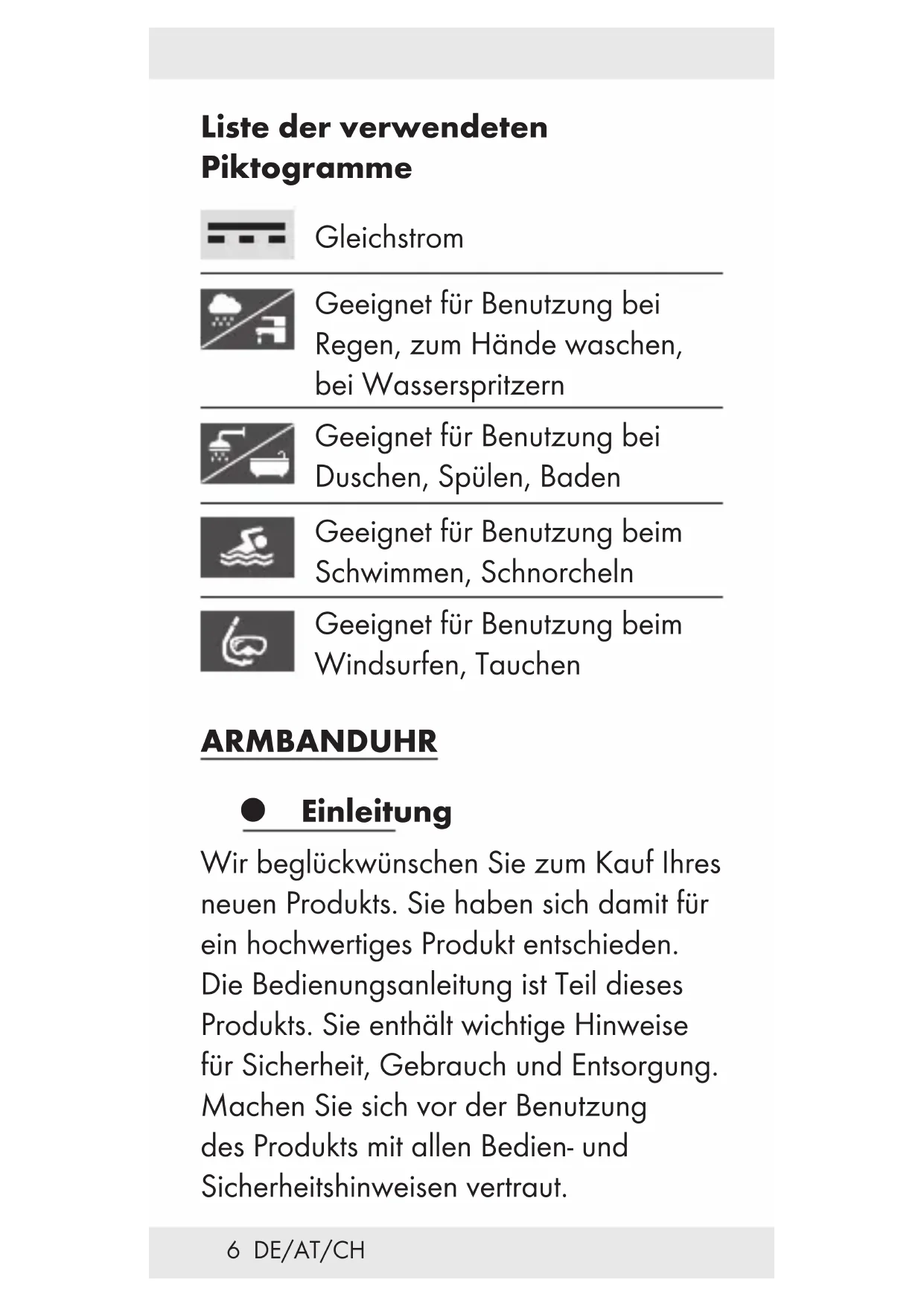 Abbildung B zeigt die zulässigen Anwendungsbereiche.itte beachten Sie, dass Wasserdichtigkeit keine bleibende Eigenschaft ist. Das Produkt sollte jährlich und insbesondere vor besonderen Belastungen geprüft werden, da die eingebauten Dichtelemente in ihrer Funktion und im alltätiglichen Gebrauch nachlassen.