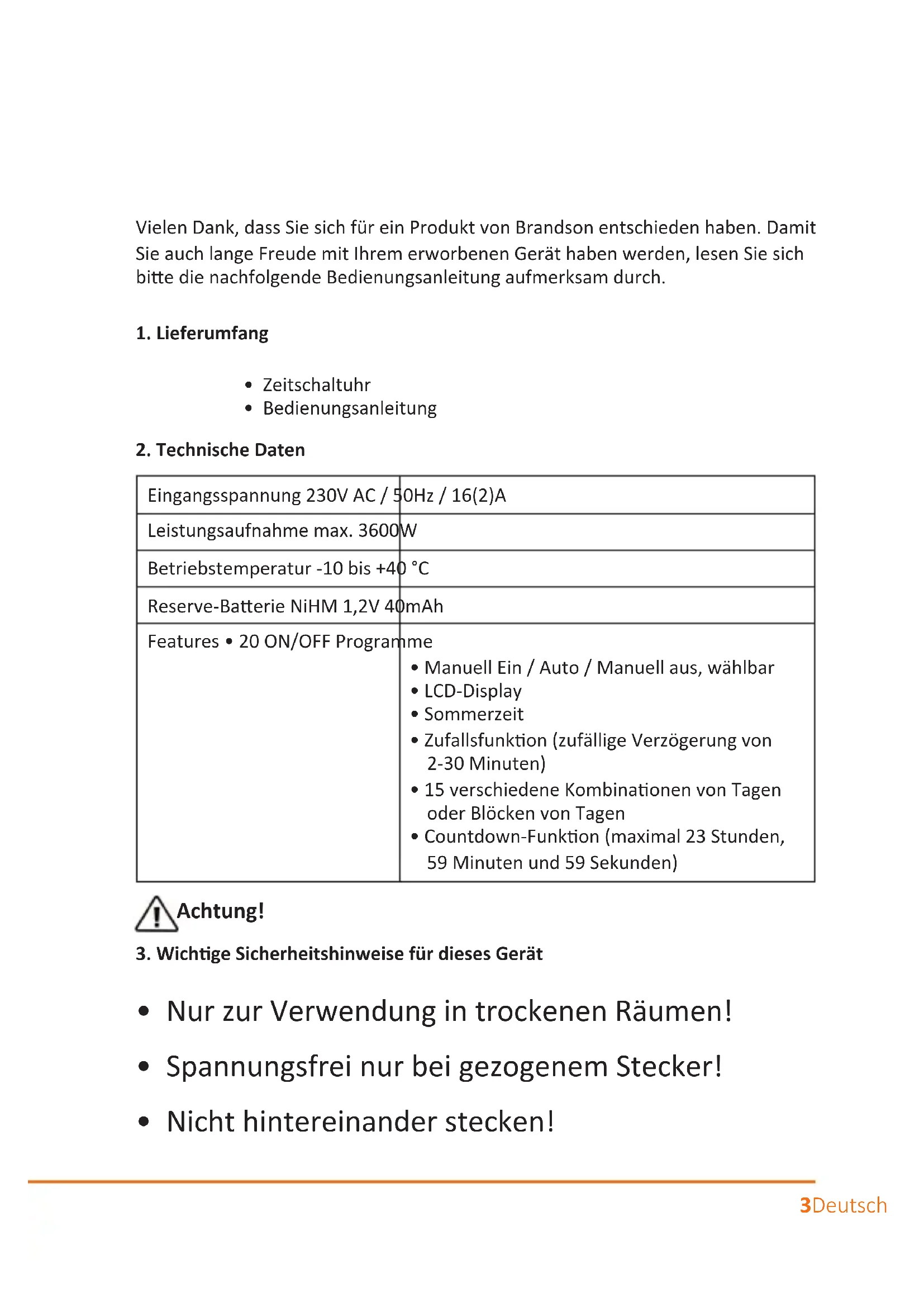 Vielen Dank, dass Sie sich für ein Produkt von Brandon entschieden haben. Damit Sie auch lange Freude mit ihrem erworbenen Gerät haben werden,lesen Sie sichitte die nachfolgende Bedienungsanleitung aufmerksam durch.