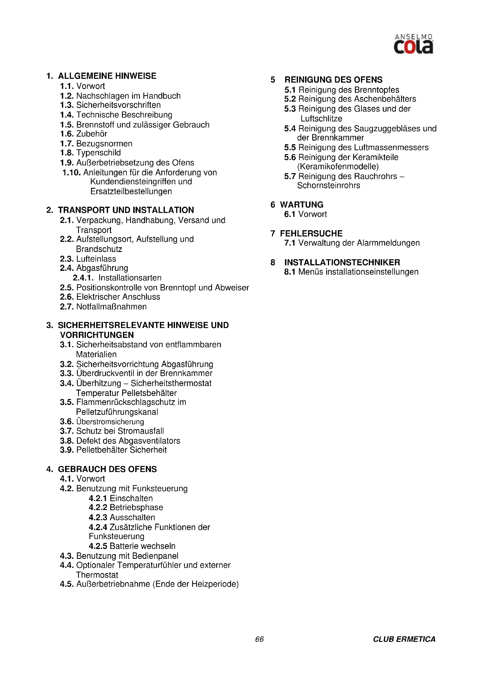 BEDIENUNGSANLEITUNG Club Ermetica Cola