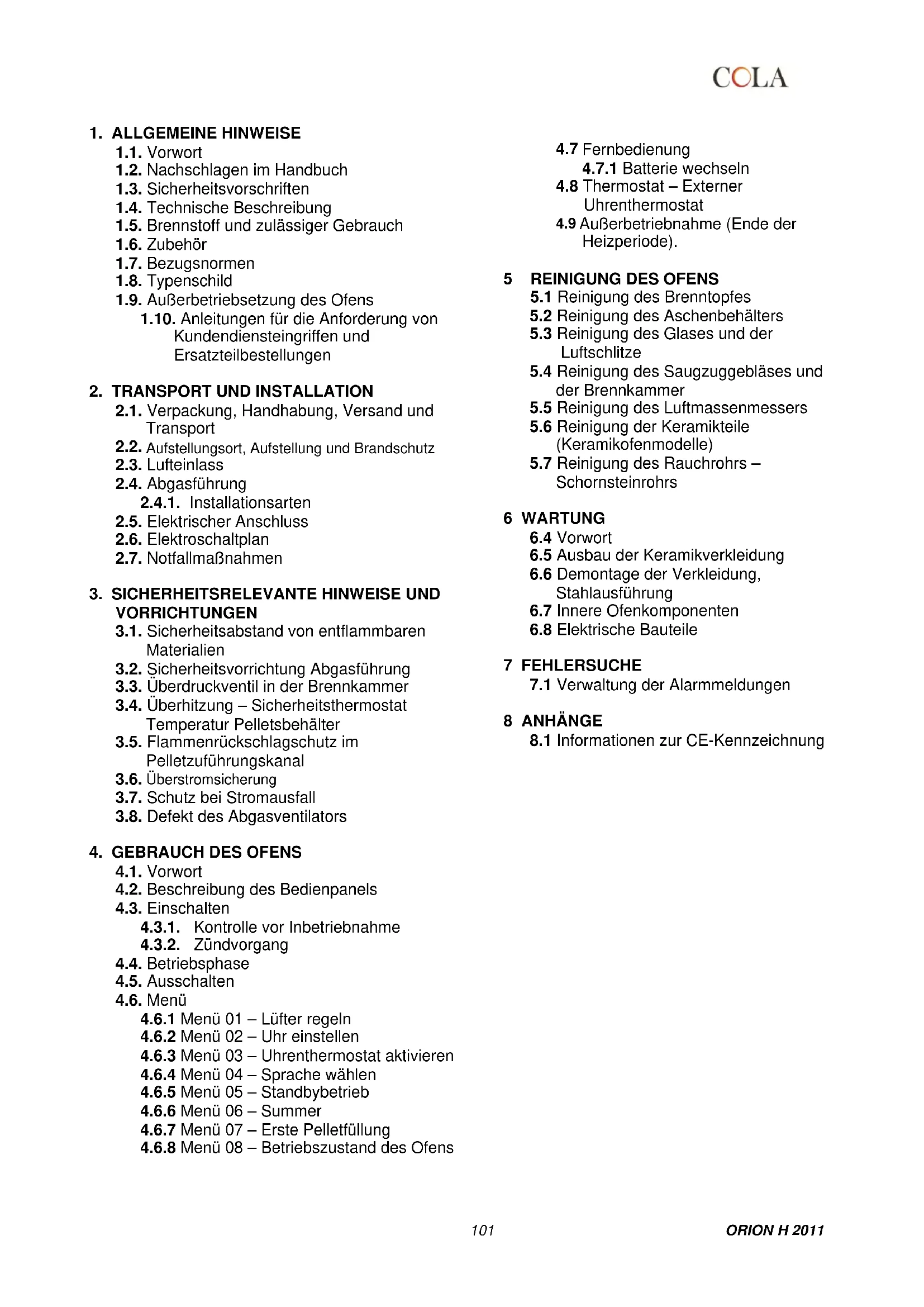 BEDIENUNGSANLEITUNG Orion Acciaio Cola