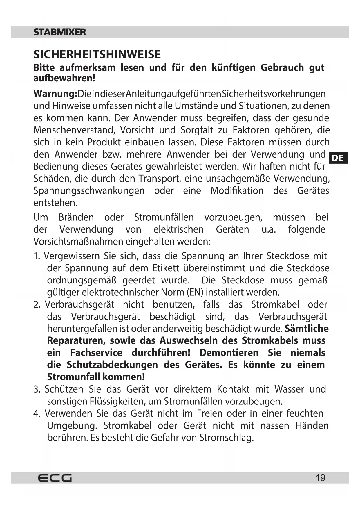 RM 410 - Stabmixer ECG - Kostenlose Bedienungsanleitung