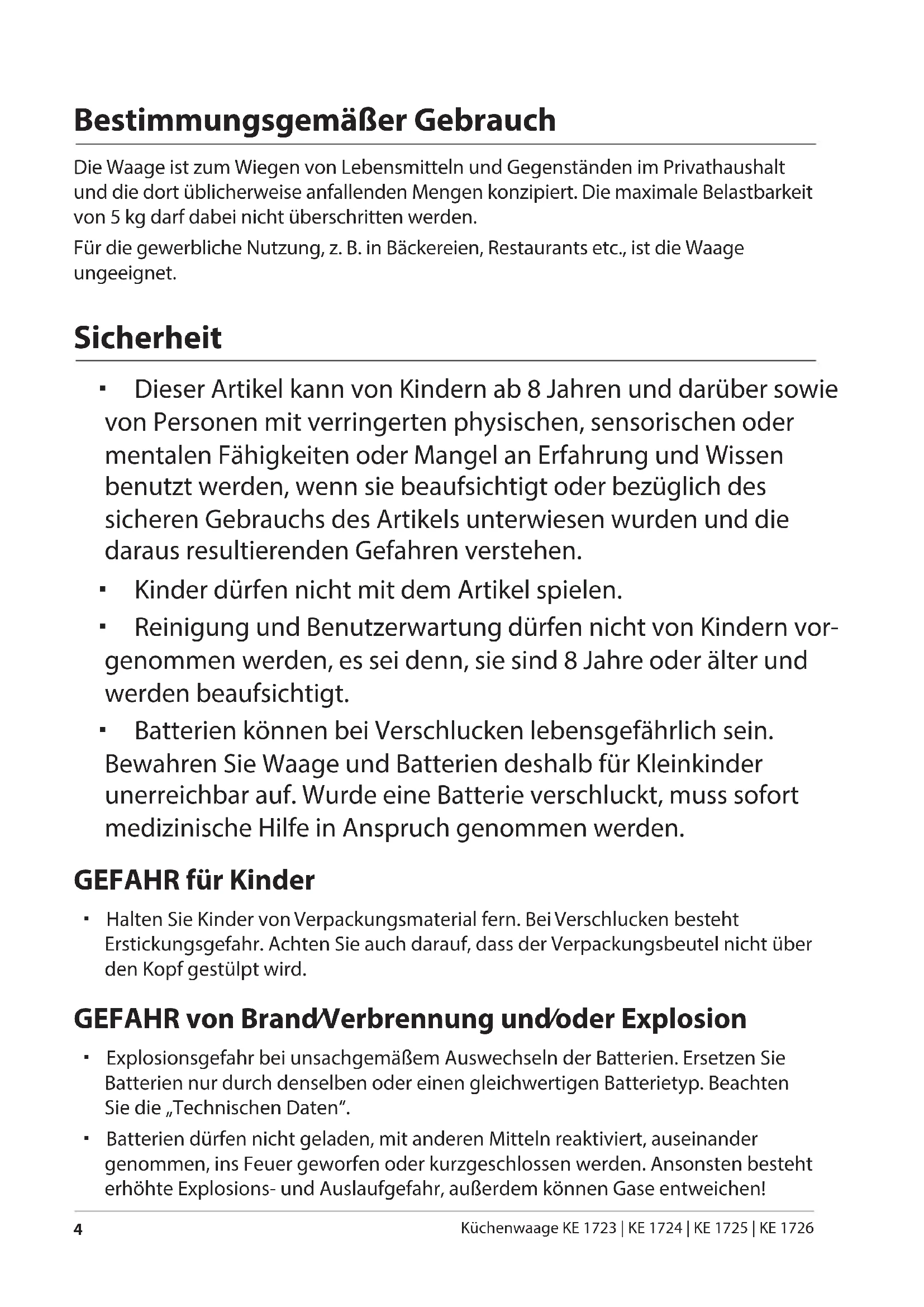- Batterien können bei Verschlucken lebensgefährlich sein. Bewahren Sie Waage und Batterien deshalb für Kleinkinder unerreichbar auf. Wurde eine Batterie verschluckt, muss sofort medizinische Hilfe in Anspruch genommen werden.