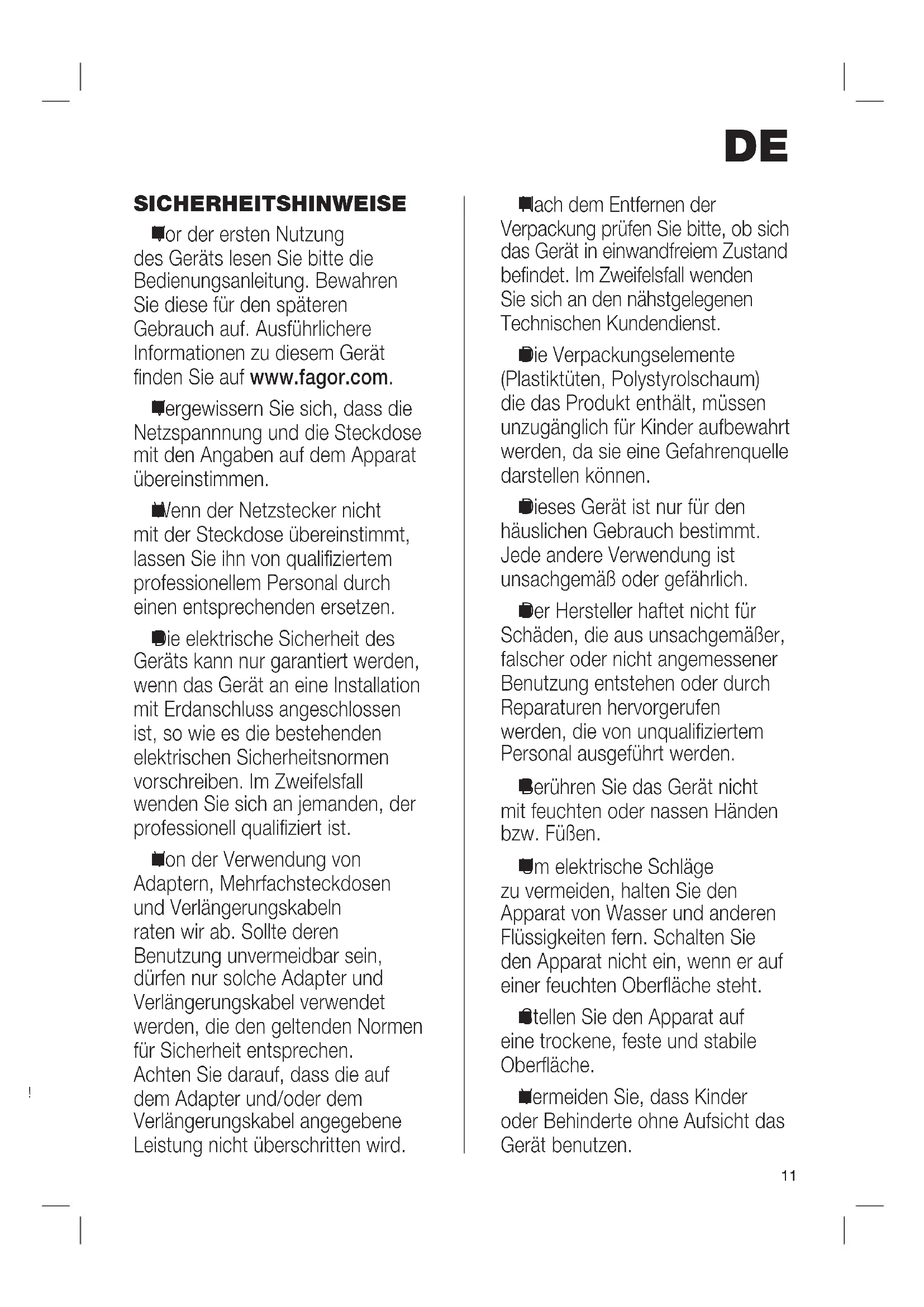 Vor der ersten Nutzung des Geräts lesen Sie bitte die Bedienungsanleitung. Bewahren Sie diese für den späteren Gebrauch auf. Ausführlichere Informationen zu diesem Gerät finden Sie auf www.fagor.com.
