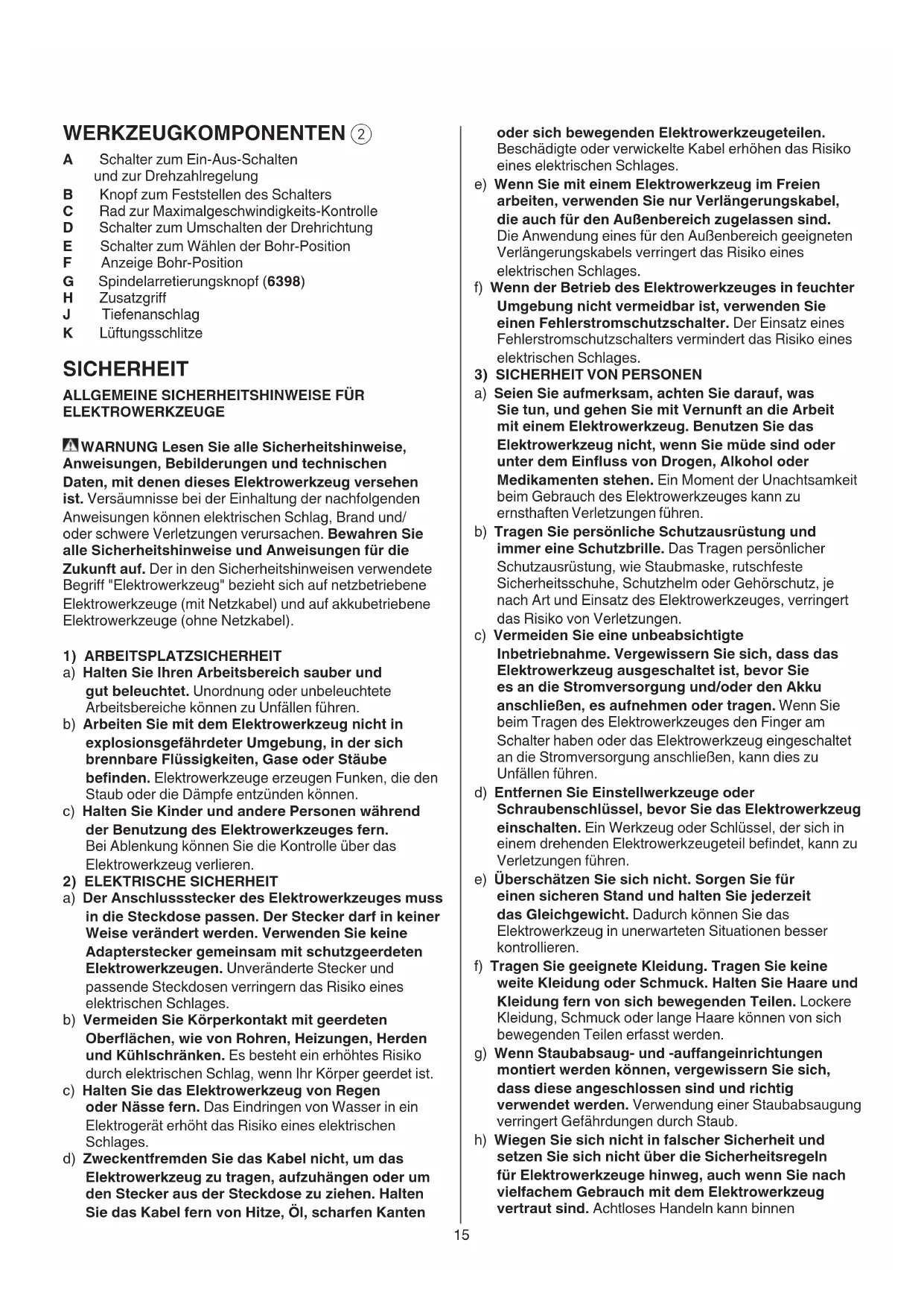 ALLGEMEINE SICHERHEITSHINWEISE FÜR ELEKTROWERKZEUGE
