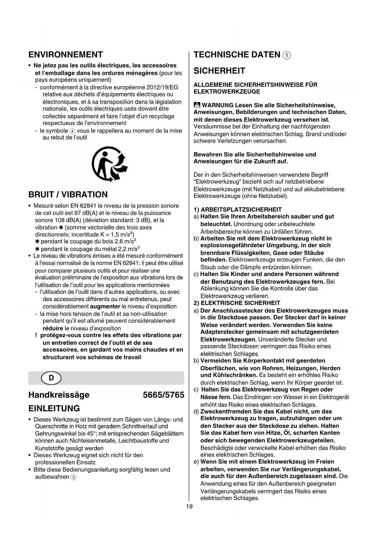 Handkreissäge 5665/5765 EINLEITUNG