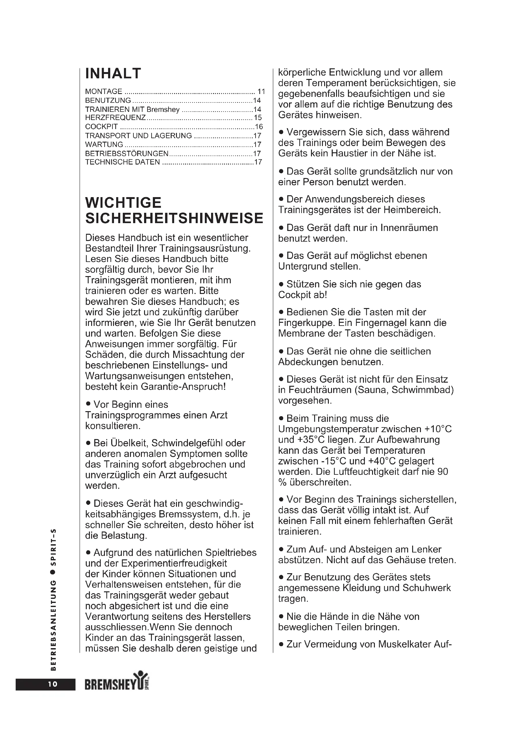 SpiritS - Ellipsentrainer Bremshey - Kostenlose Bedienungsanleitung