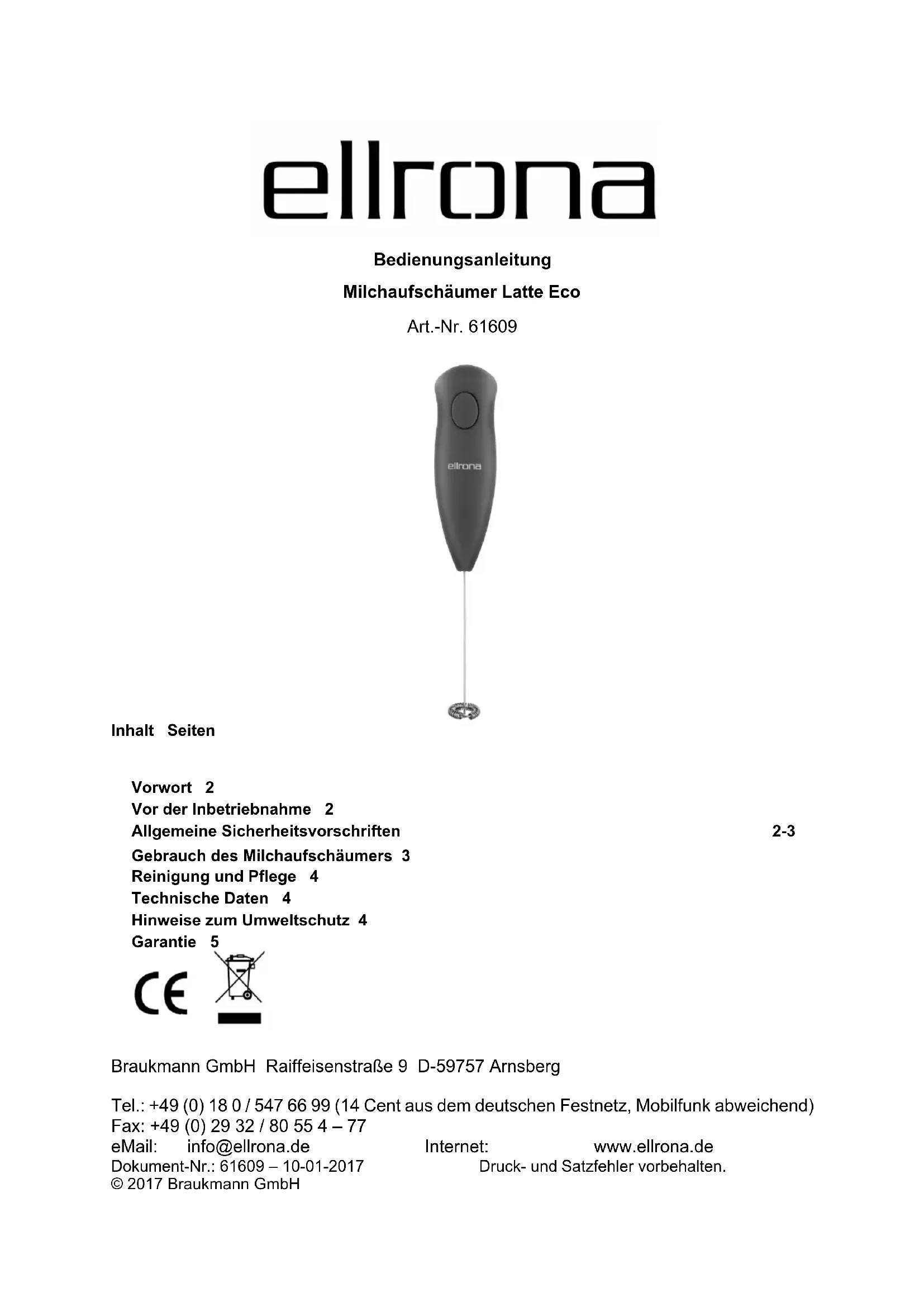 Latte Eco 61609 - Milchaufschäumer Ellrona - Kostenlose Bedienungsanleitung