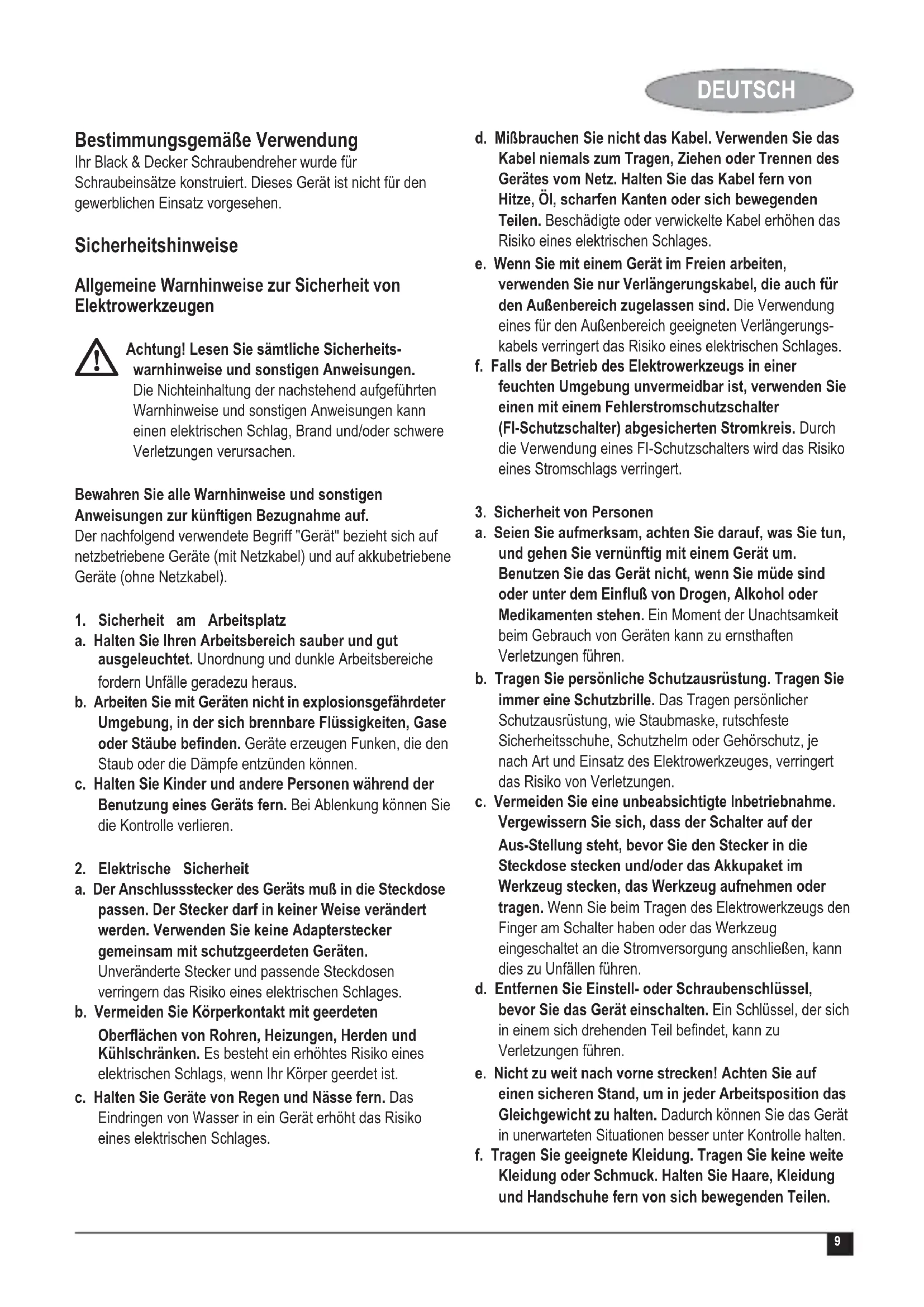 Ihr Black & Decker Schraubendreher wurde für Schraubeinsätze konstruiert. Dieses Gerät ist nicht für den gewerblichen Einsatz vorgesehen.