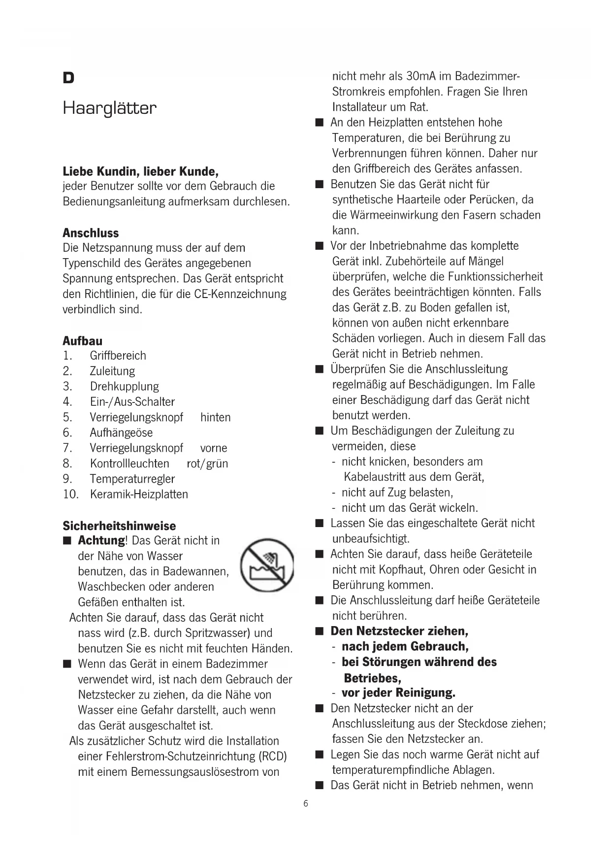 Den Netzsteckerziehen, nach jedem Gebrauch, bei Störungen während des Betriebes, vor jeder Reinigung.
