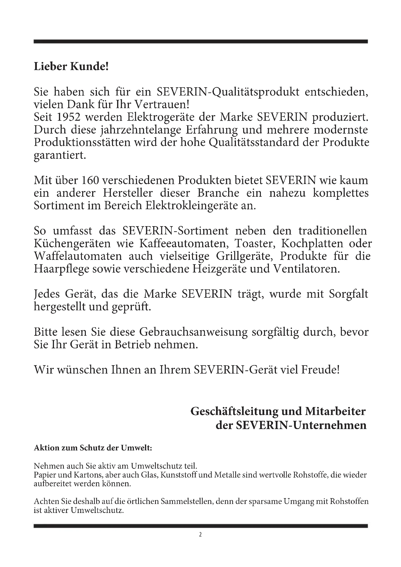 Finden Sie kostenlos die Bedienungsanleitung des Geräts HT 6230 SEVERIN als PDF.
