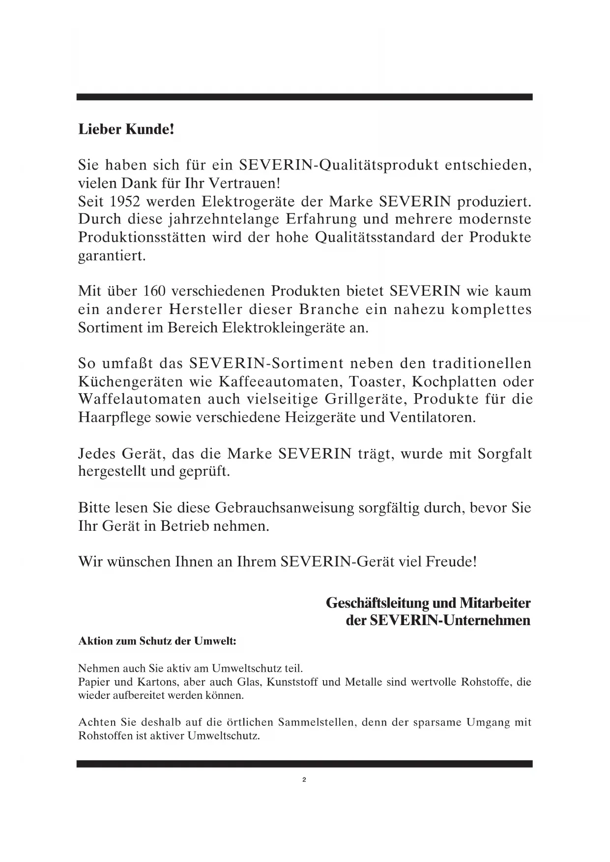 Wir wünschen Ihnen an Ihrem SEVERIN-Gerät viel Freude!