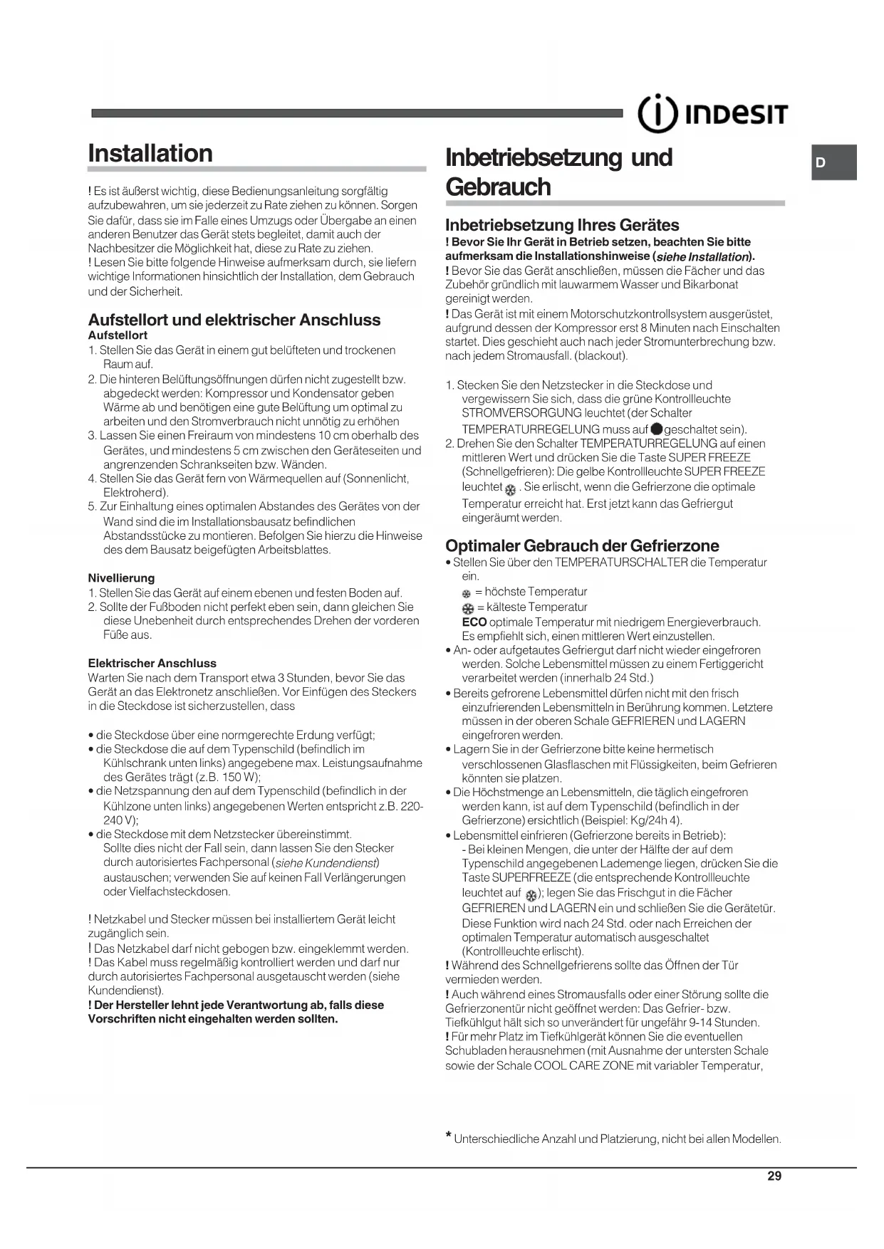 UIAA 12 F X - Gefrierschrank INDESIT - Kostenlose Bedienungsanleitung