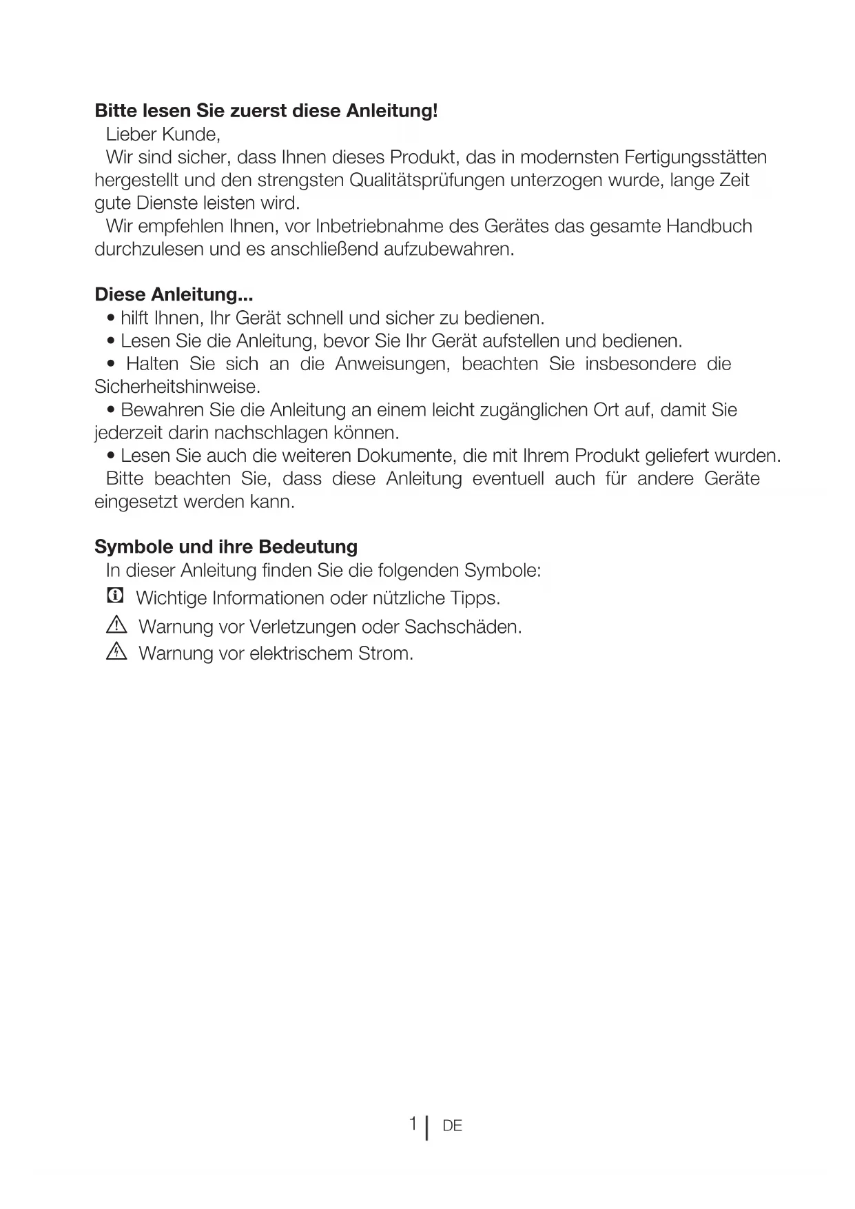 - Lesen Sie die Anleitung, bevor Sie Ihr Gerät aufstellen und bedienen.