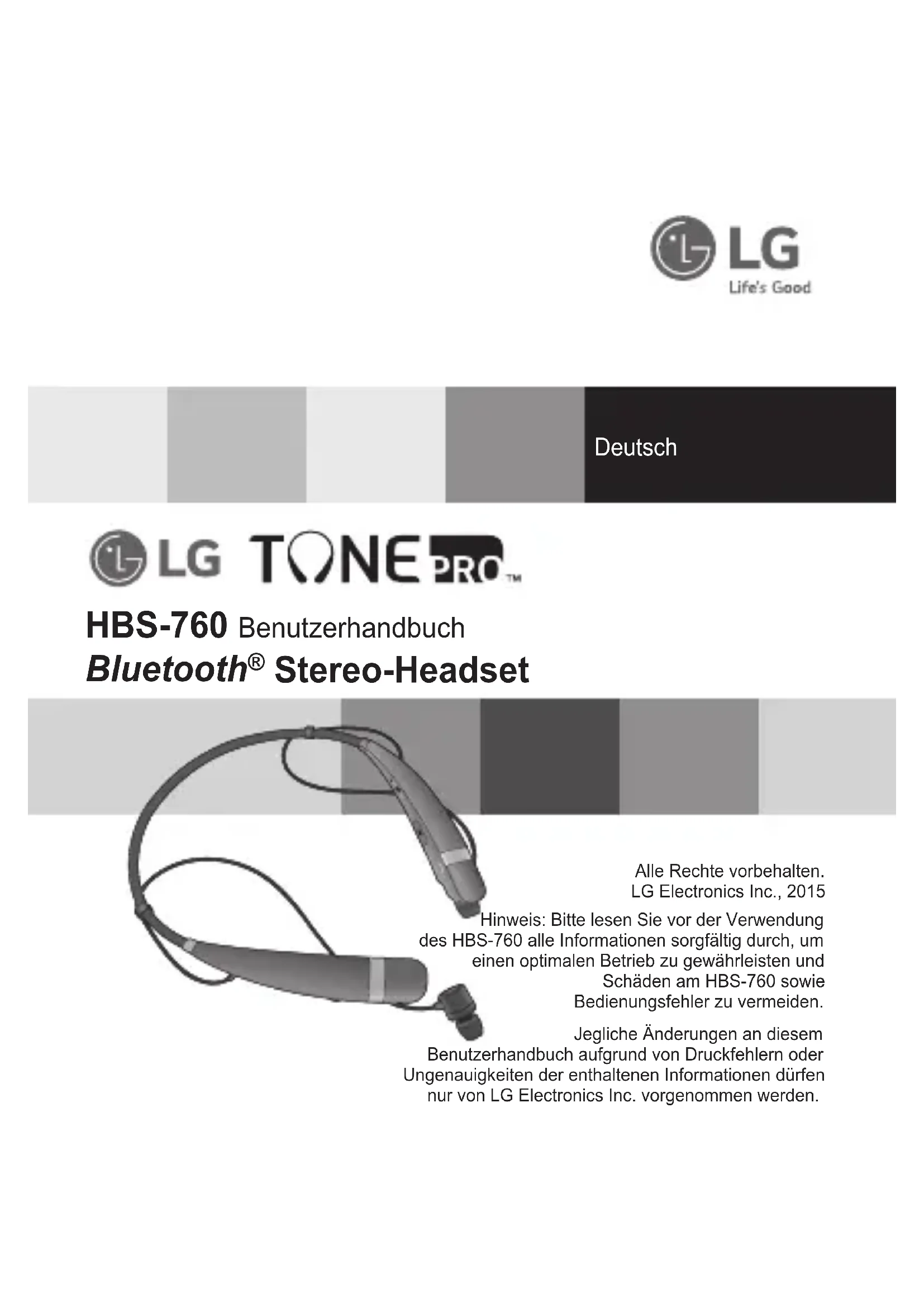 Finden Sie kostenlos die Bedienungsanleitung des Geräts Tone Pro HBS760 LG als PDF.