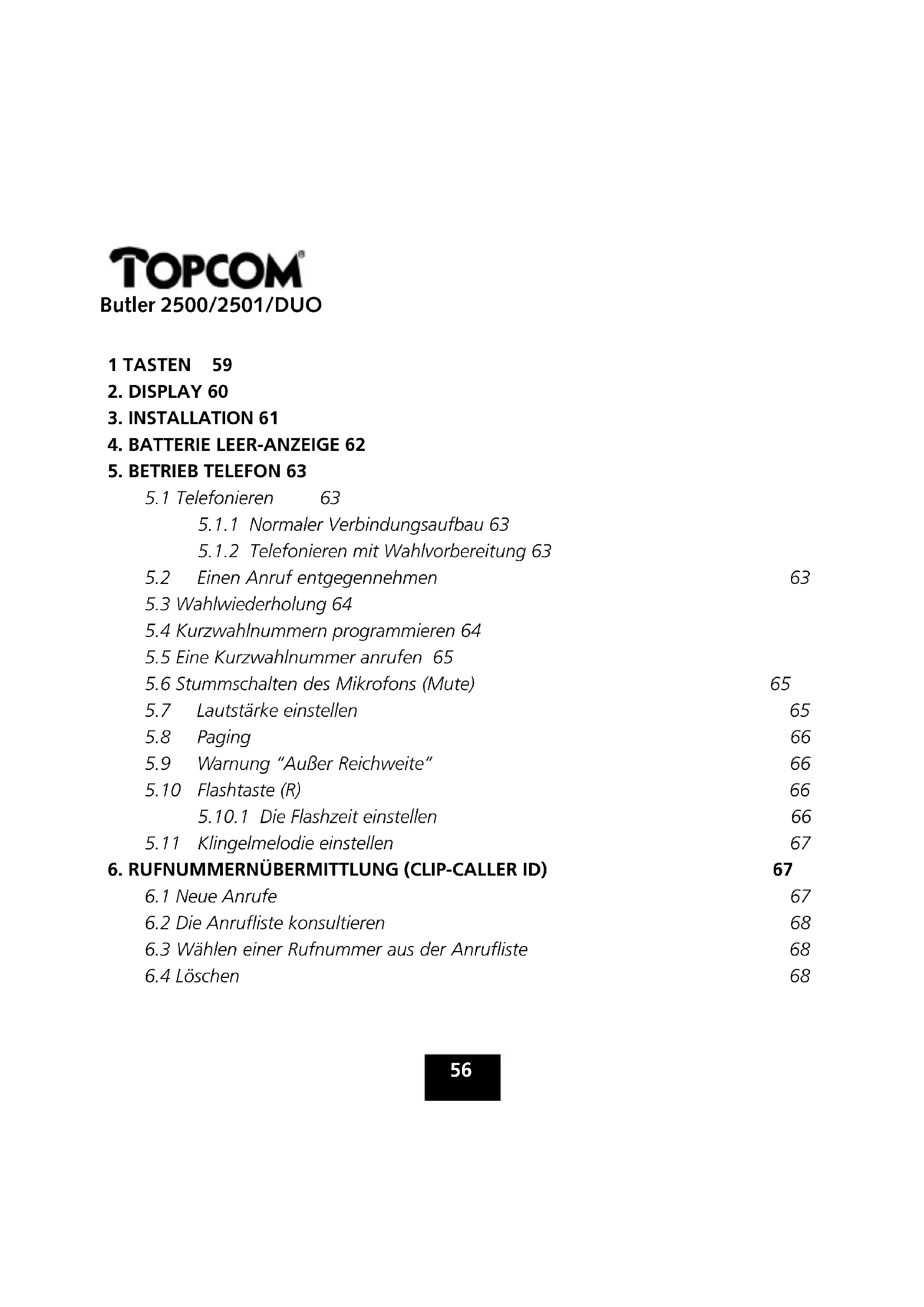 Finden Sie kostenlos die Bedienungsanleitung des Geräts Butler 2501 DUO TOPCOM als PDF.