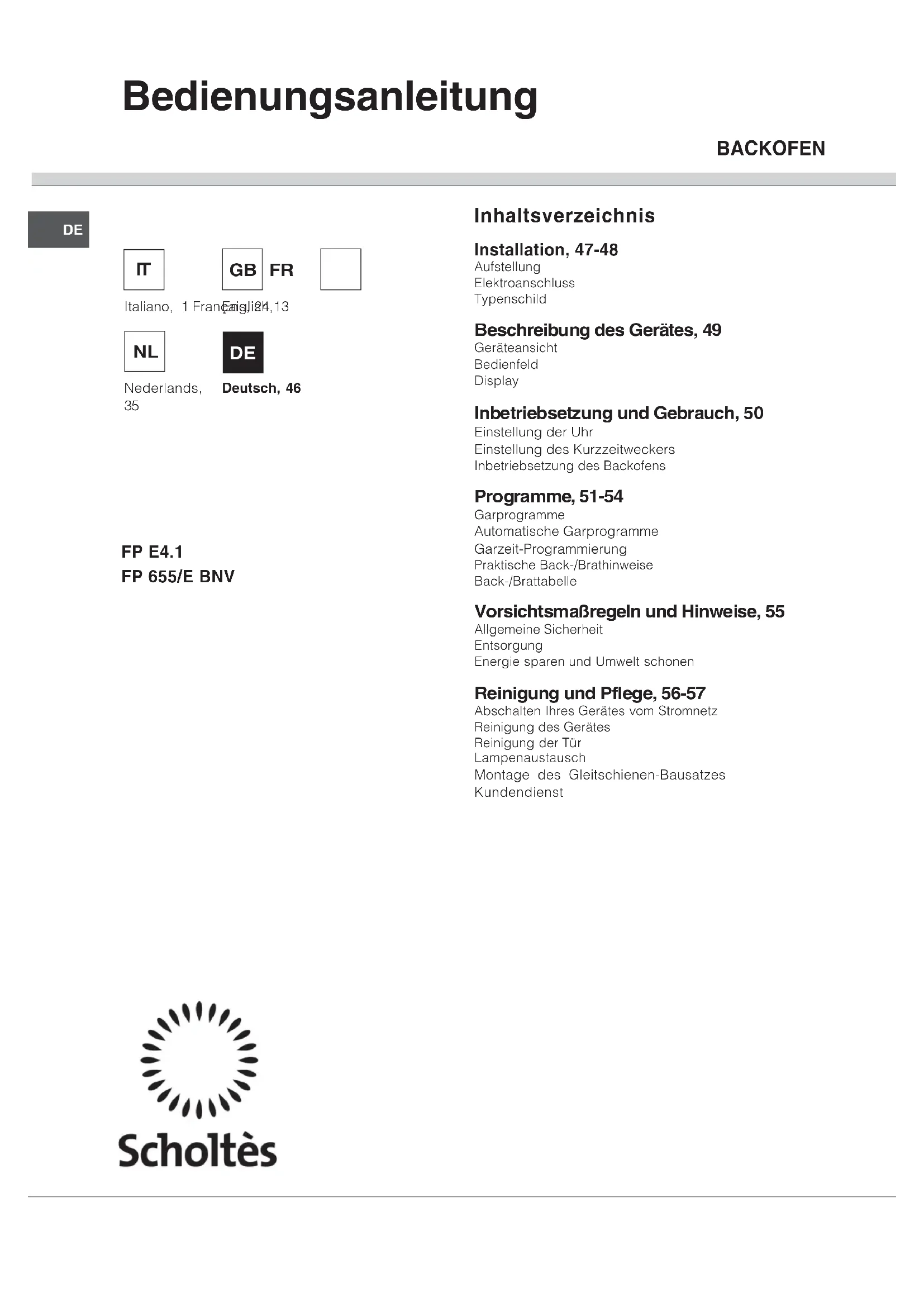 FP E4.1 - Ofen SCHOLTES - Kostenlose Bedienungsanleitung