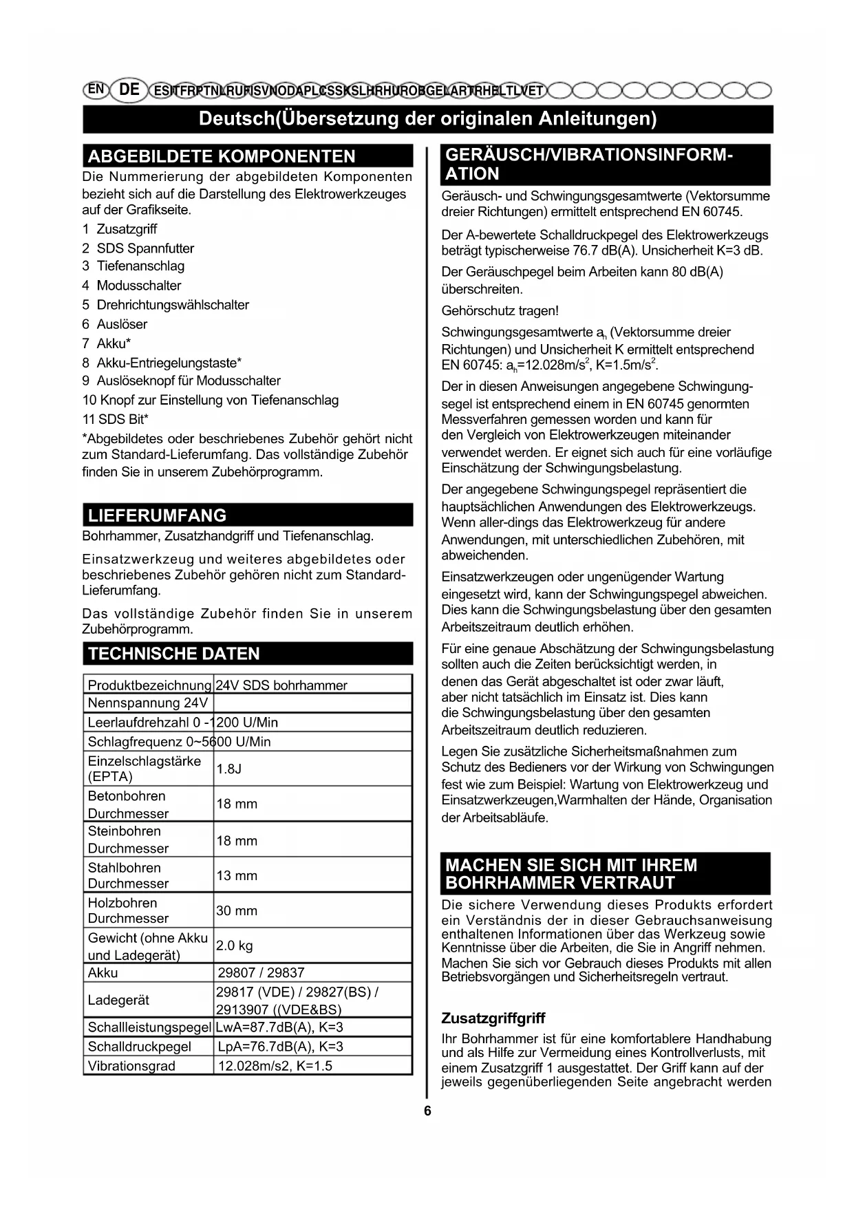 24V SDS BOHRHAMMER BEDIENUNGSANLEITUNG 6