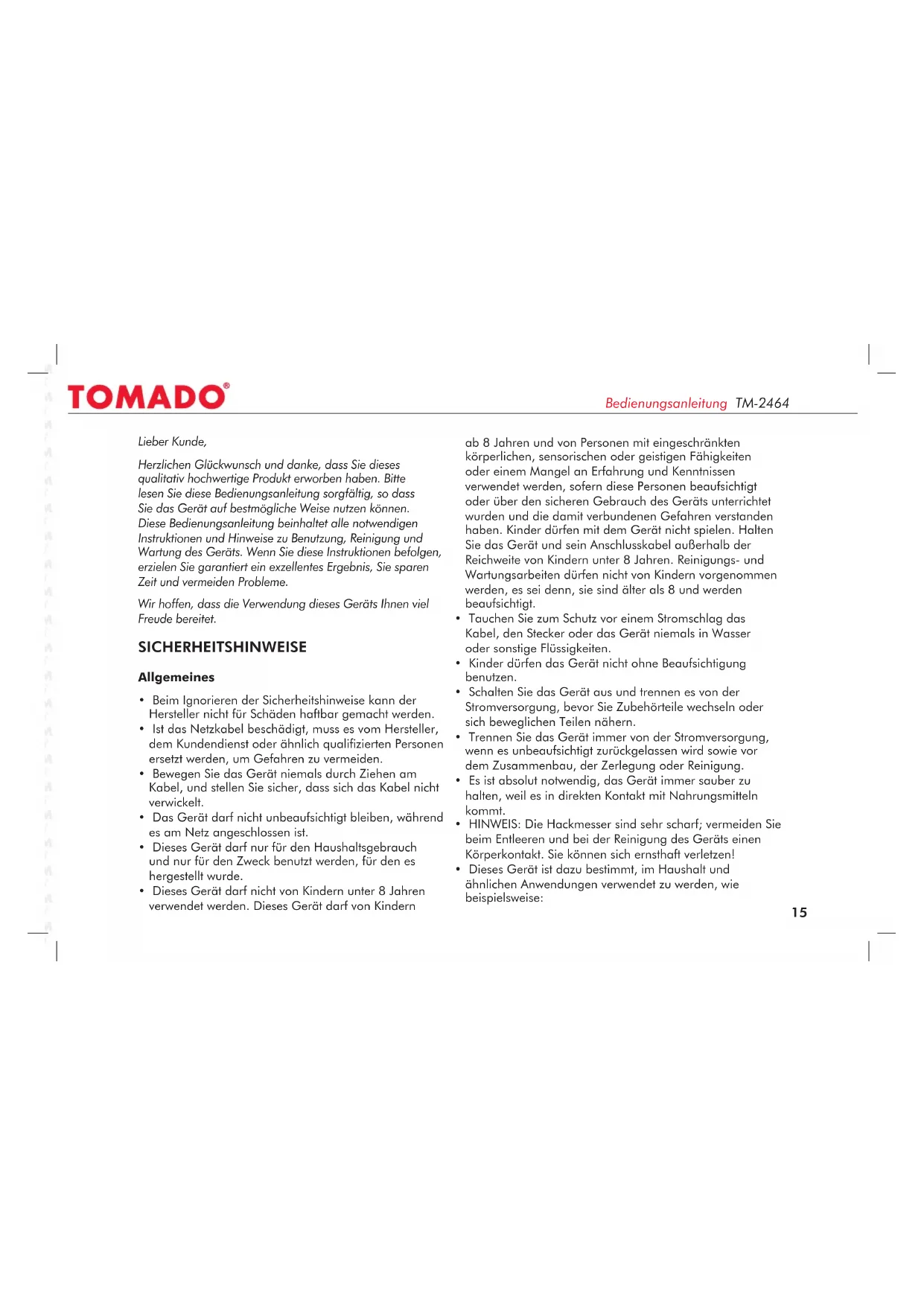 BEDIENUNGSANLEITUNG TM2464 Tomado