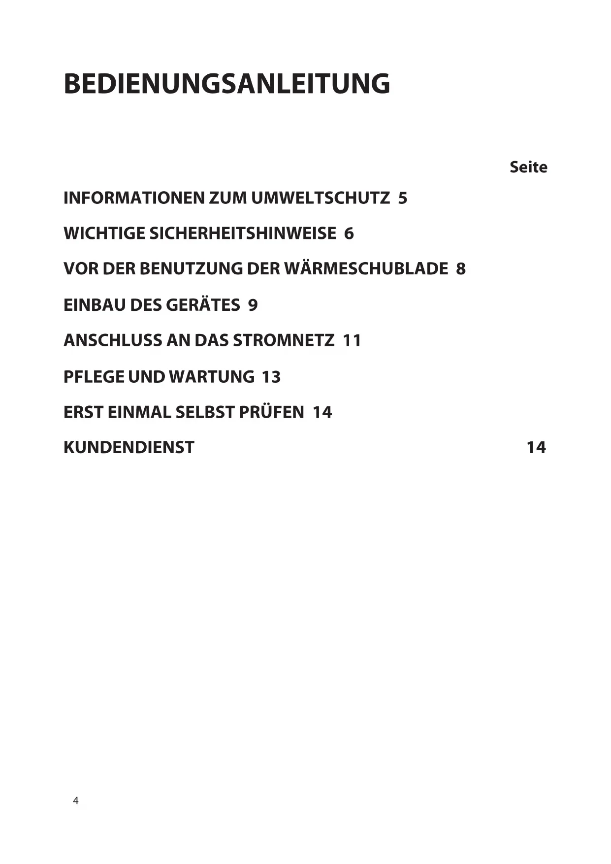 - Die Wärmeschublade darf ohne Aufsicht weder von Kindern noch von Personen benutzt werden, die hierzu nicht in der Lage sind.