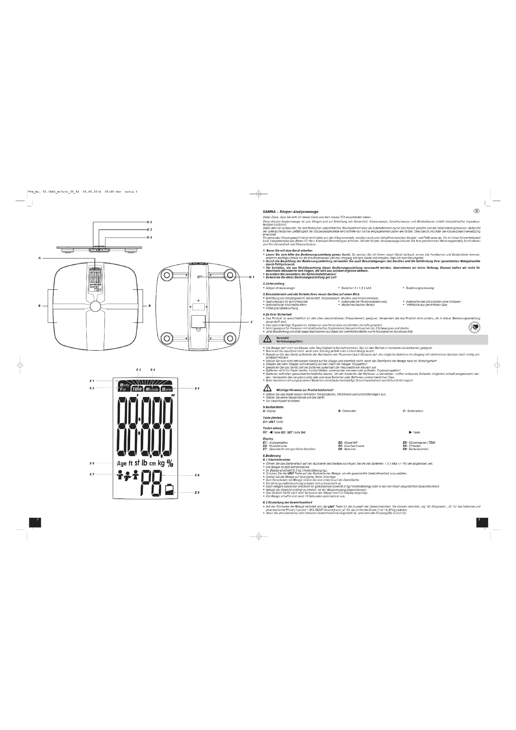 Samba 50.1002.01 - Waagen TFA - Kostenlose Bedienungsanleitung