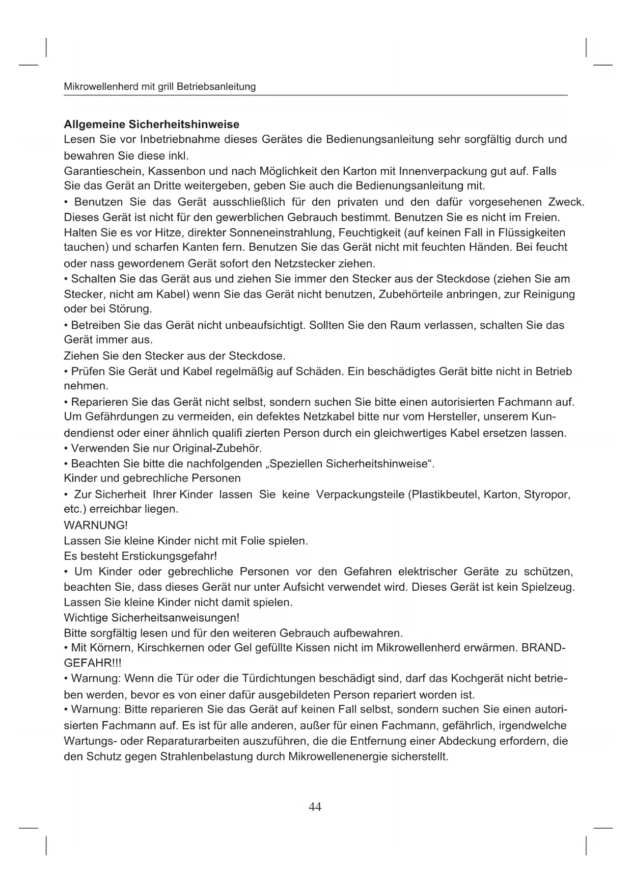 - Warning: Wenn das Gerät im Kombibetrieb betrieben wird,ürfen Kinder wegen der vorkommen den Temperaturen, das Gerät nur unter Aufsicht von Erwachsenen benutzen.