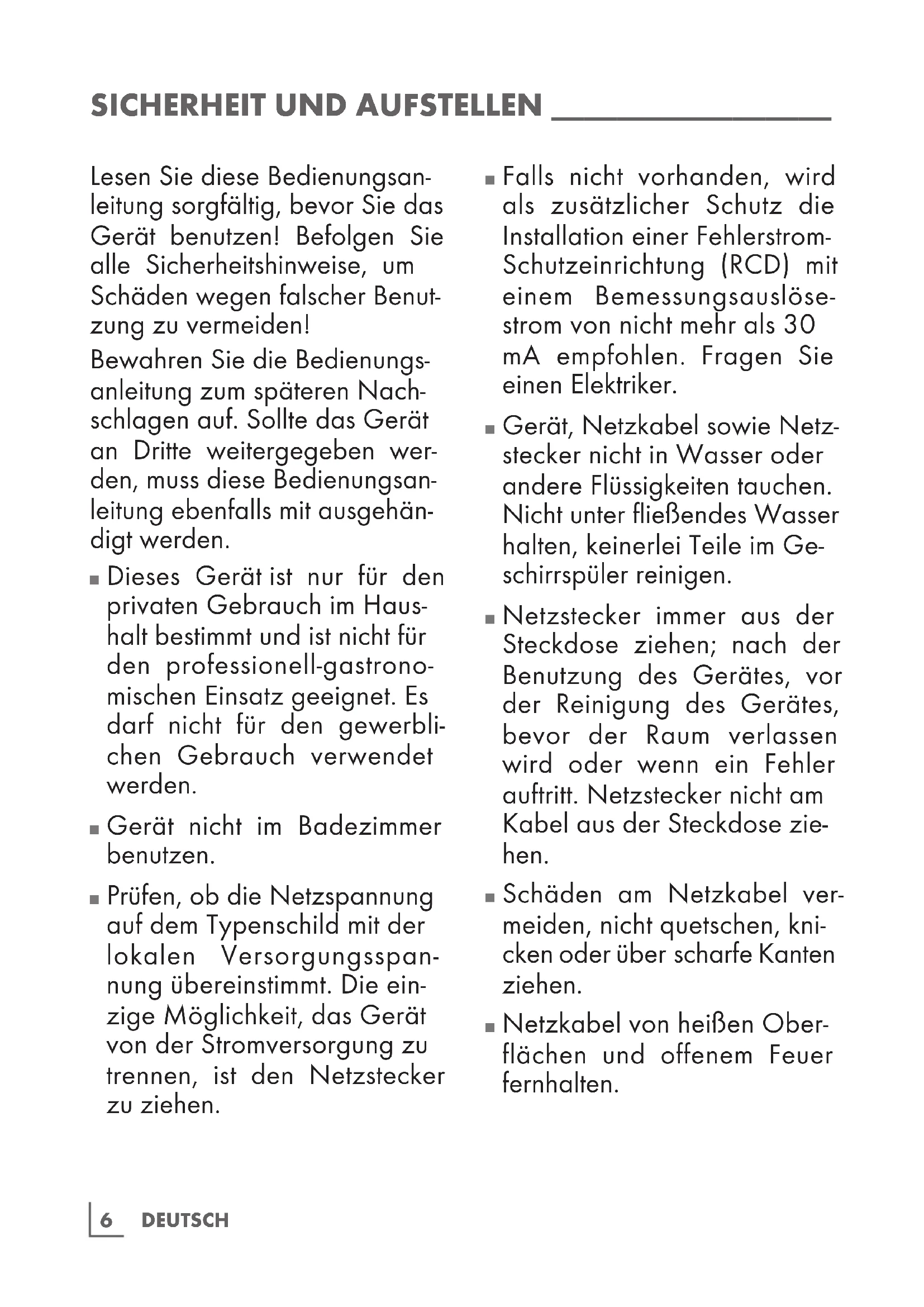 Dieses Gerät ist nur für den privaten Gebrauch im Haus- halt bestimmt und ist nicht für den professionell-gastrono- mischen Einsatz geeignet. Es darf nicht für den gewerbli- chen Gebrauch verwendet werden.