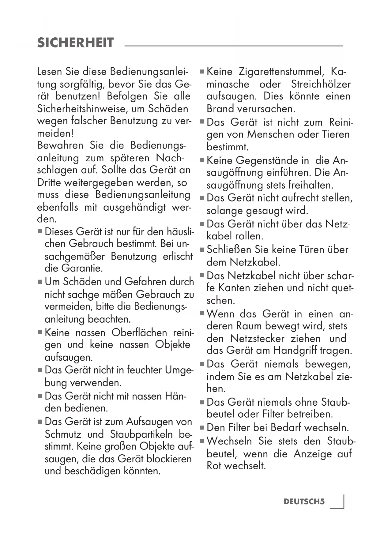 SICHERHEIT Lesen Sie diese Bedienungsanlei- tung sorgfältig, bevor Sie das Ge- rät benutzen! Befolgen Sie alle Sicherheitshinweise, um Schäden wegen falscher Benutzung zu ver- meiden! Bewahren Sie die Bedienungs- anleitung zum späteren Nach- schlagen auf. Sollte das Gerät an Dritte weitergegeben werden, so muss diese Bedienungsanleitung ebenfalls mit ausgehändigt wer- den.
