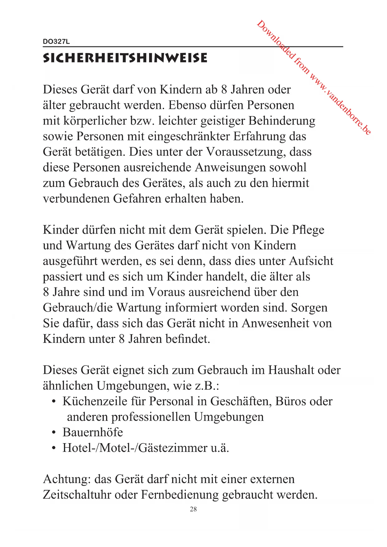 Dieses Gerät darf von Kindern ab 8 Jahren oder älter gebraucht werden. Ebenso dürfen Personen mit körperlicher bzw. leichter geistiger Behinderung sowie Personen mit eingeschränkter Erfahrung das Gerät betätigen. Dies unter der Voraussetzung, dass diese Personen ausreichende Anweisungen sowohl zum Gebrauch des Gerätes, als auch zu den hiermit verbundenen Gefahren erhalten haben.