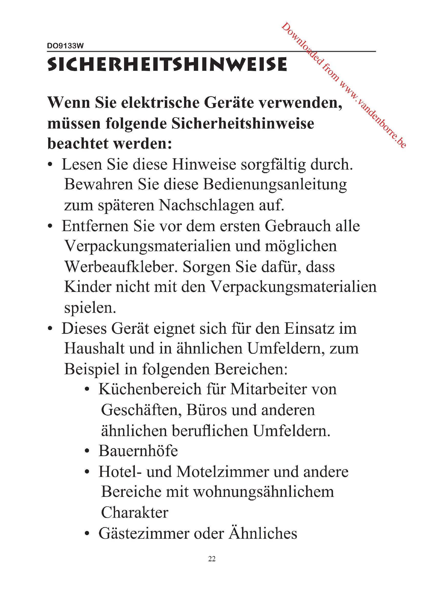 BEDIENUNGSANLEITUNG DO9133W DOMO