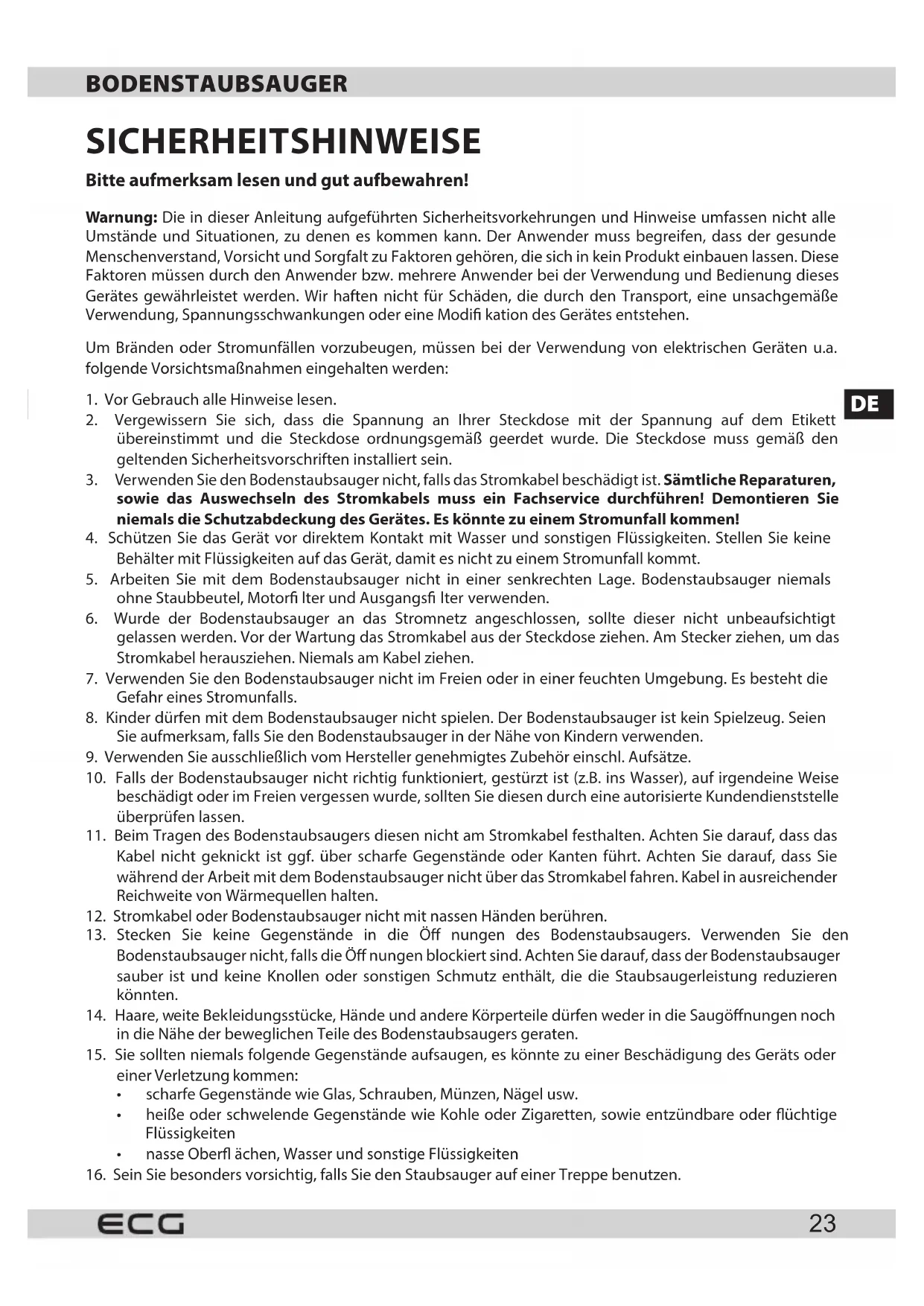 Bedienungsanleitung s. www.ecg-electro.eu.