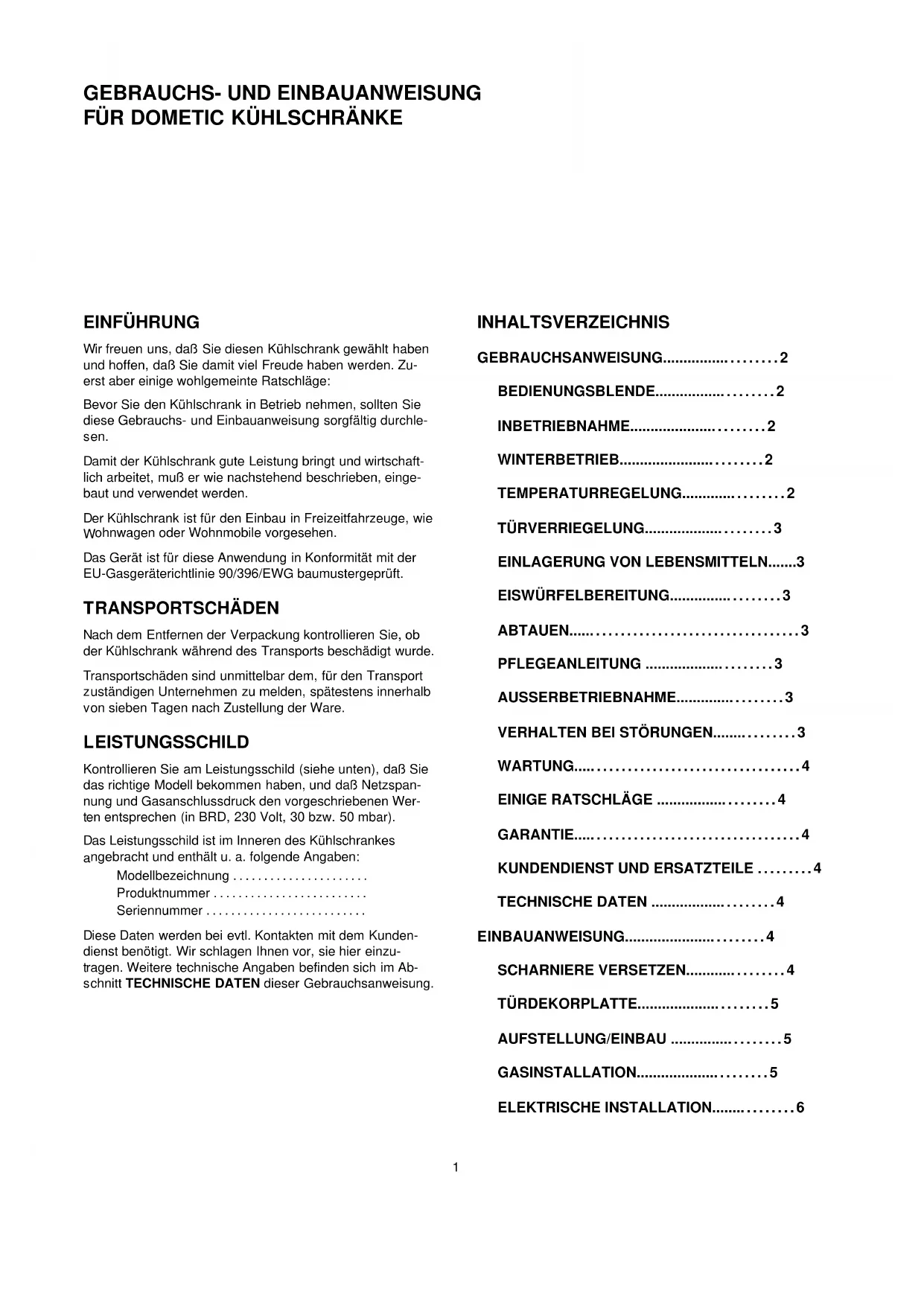 EBRAUCHS- UND EINBAUANWEISUNG