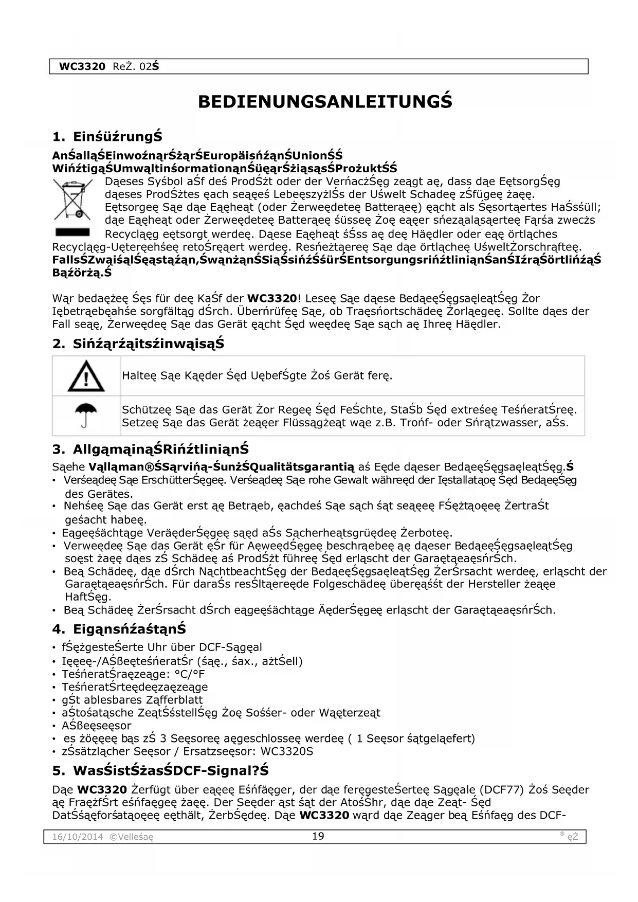 - Bea Schädee, dae d'Srch NachtbeachtSeg der BedaegSegsaeleatSeg ZerSrsacht werdee, erlascht der Garaetqeaesnrsch. Für daraSs resItaereede Folgeschädee übereasst der Hersteller zeaee HaftSeg.