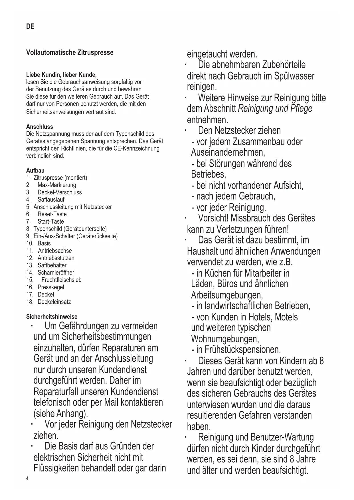 - Der Saftbehälter, das Fruchfleischsieb, der Presskegel und der Deckeleinsatz konnen in der Spülmaschine gereinigt werden.