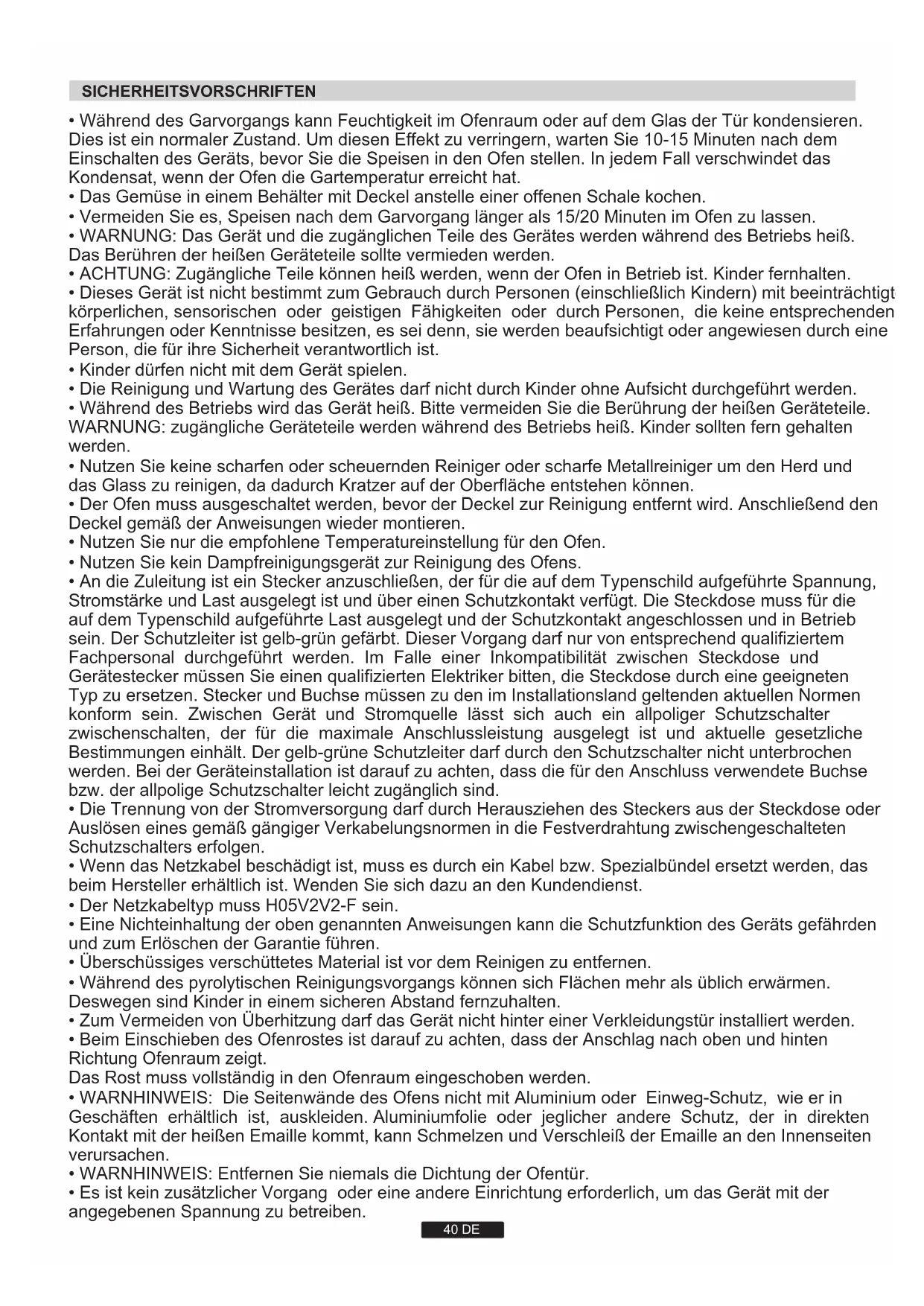- Der Netzkabeltyp muss H05V2V2-F sein.