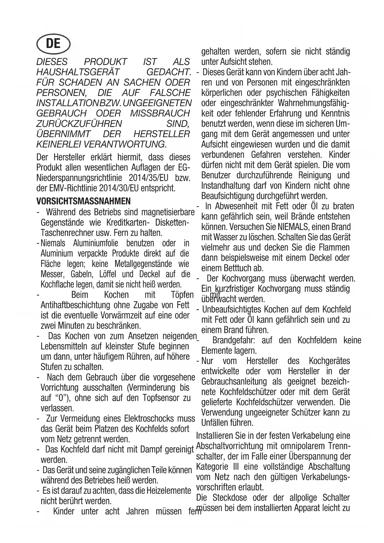KEINERLEI VERANTWORTUNG. Der Hersteller erklärt hiermit, dass dieses Produkt allen wesentlichen Auflagen der EG- Niederspannungsrichtlinie 2014/35/EU bzw. der EMV-Richtlinie 2014/30/EU entspricht. VORSICHTSMASSNAHMEN - Während des Betriebs sind magnetisierbare Gegenstände wie Kreditkarten- Disketten- Taschenrechner usw. Fern zu halten.
