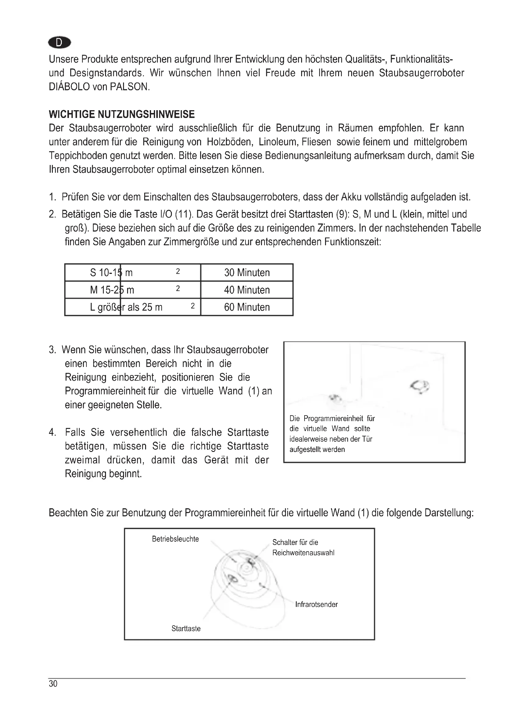 Unsere Produkte entsprechen aufgrund ihrer Entwicklung den hochsten Qualitäts-, Funktionalitäts- und Designstandards. Wir wünschen Ohnen viel Freude mit ihrem neuen Staubsaugerroboter DIÁBOLO von PALSON.