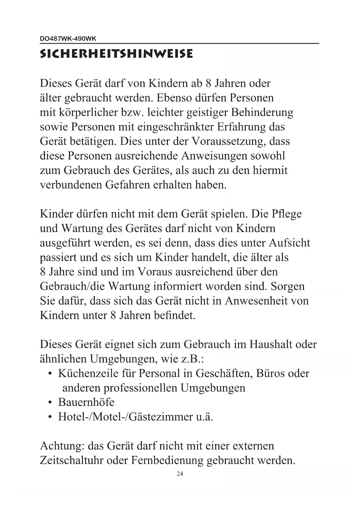 BEDIENUNGSANLEITUNG DO488WK DOMO