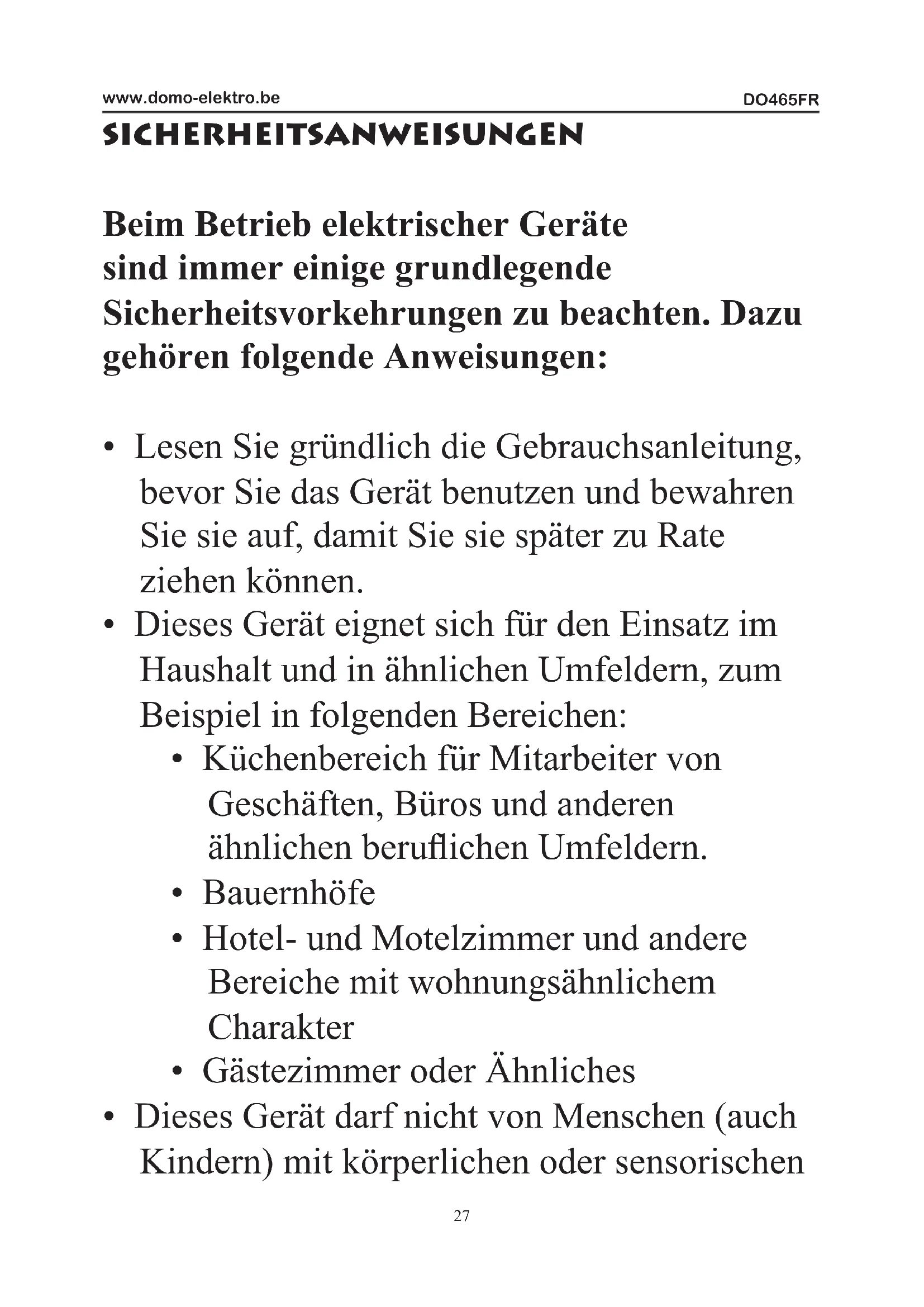 BEDIENUNGSANLEITUNG DO465FR DOMO