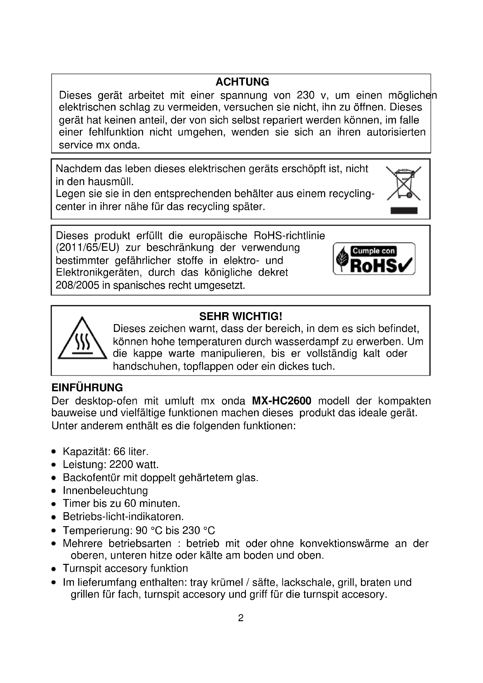 BEDIENUNGSANLEITUNG MXHC2600 Mx Onda