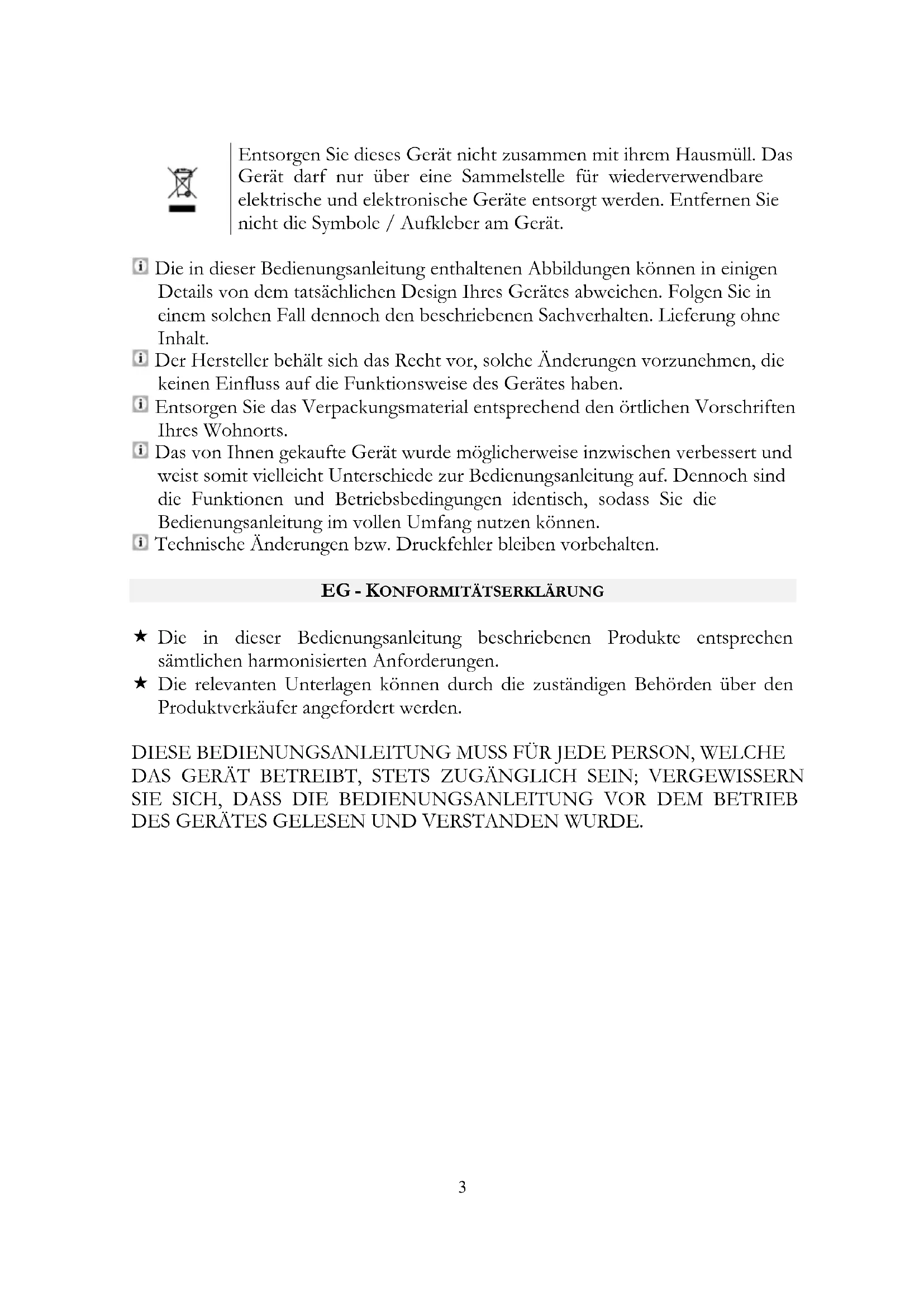 Sehr geehrter Kunde! Sehr geehrte Kundin! Wir möchten Ohnen herzlich danken, dass Sie sich zum Erwerb eines Produkts aus unserem reichhaltigen Angebott entschieden haben. Lesen Sie die gesamte Bedienungsanleitung, bvor Sie das Gerät zum ersten Mal benutzen. Verwahren Sie diese Bedienungsanleitung zur zukünftigen Verwendung an einem sicheren Ort. Falls Sie das Gerät weitergeben, müssen Sie diese Bedienungsanleitung ebenfalls mit übergeben.