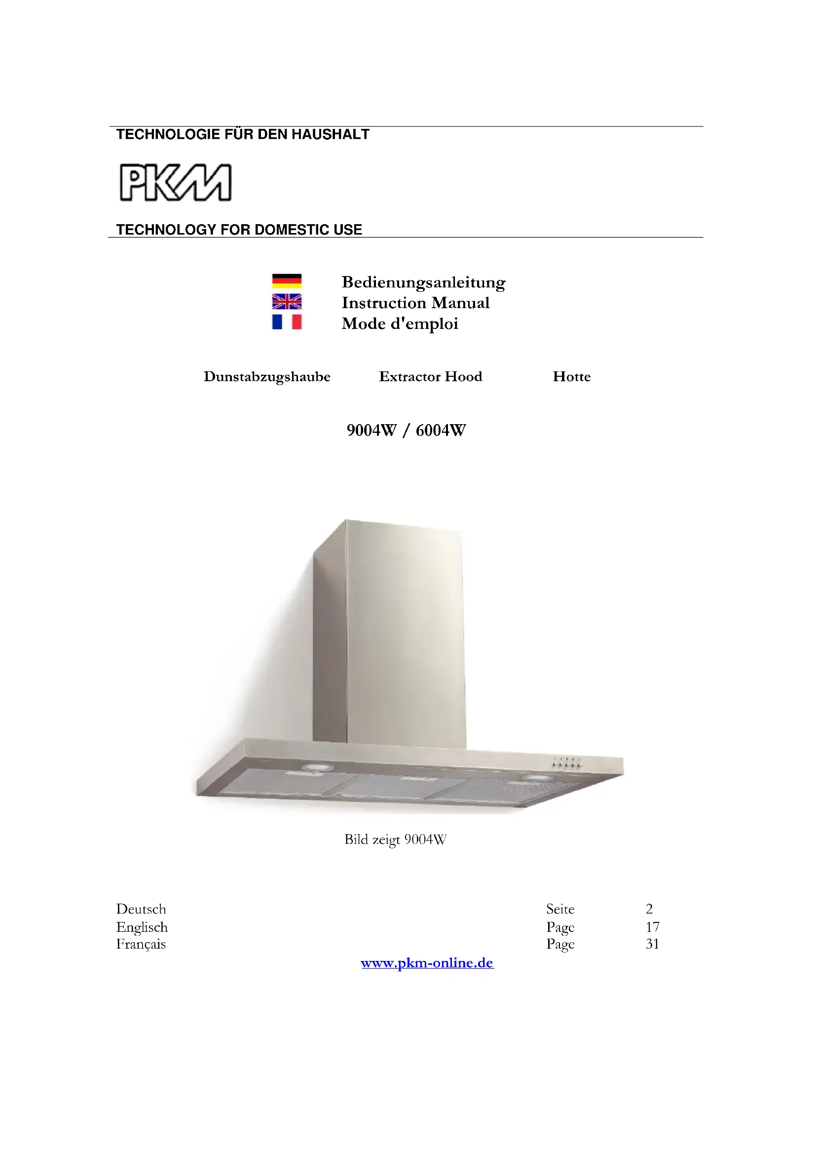 9004W - Dunstabzugshaube PKM - Kostenlose Bedienungsanleitung