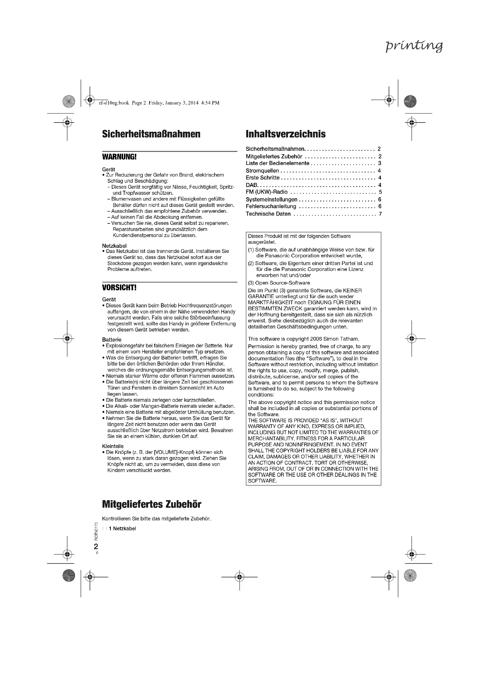 RFD10EB - Radio PANASONIC - Kostenlose Bedienungsanleitung
